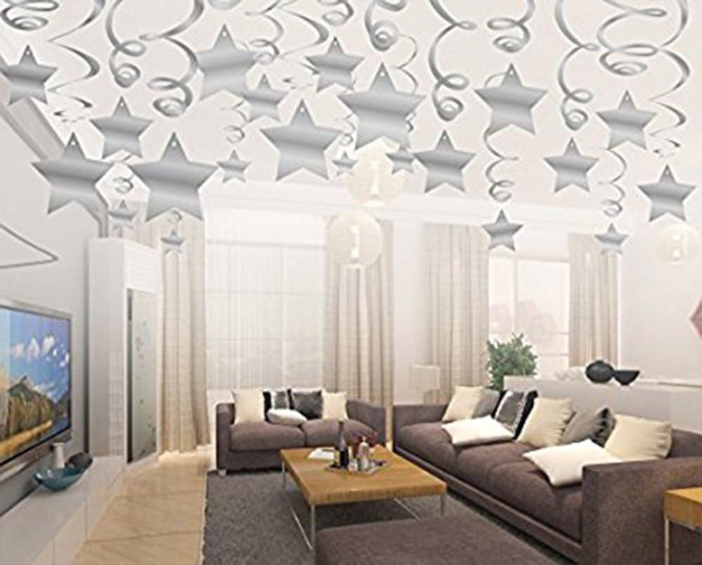 Party Swirl Decorations, Hanging Swirl for Ceiling Decorations, Silver with Star, Pack of 30