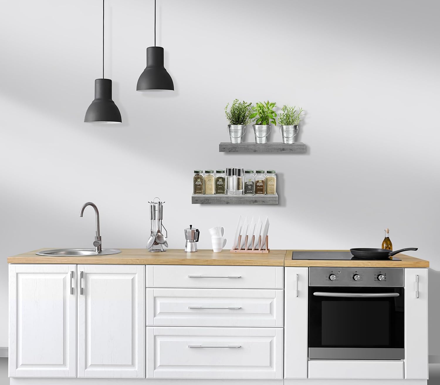 Sorbus Floating Shelves for Wall, Bathroom Shelves Wall Mounted for Kitchen, Bedroom, Bathroom Storage Over Toilet, Hanging Book Shelf for Wall Home Decor Living Room (Gray, 2 Pack)