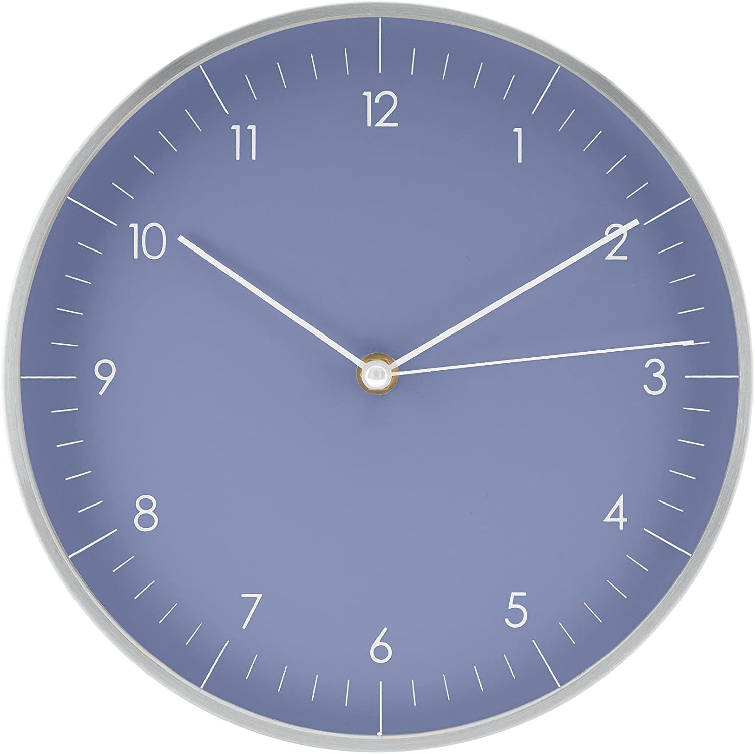 LUUK LIFESTYLE Minimalist Wall Clock with Silent Movement, no Ticking, Modern Design, Kitchen Clock, Decoration and Gift idea, in Blue and Silver