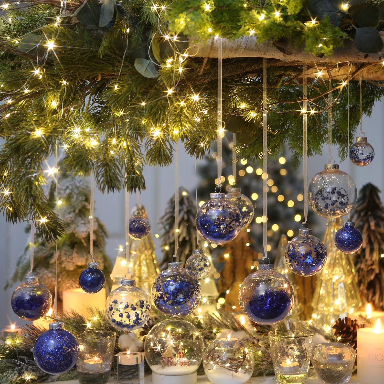 - TRANSPARENT & SPARKLING - These Christmas ball ornaments feature clear glaze base with sparkling decorations like glitter, sequins, tinsel and beads to provide a stunning shimmering look in the light. They will be perfect for decorating your home and become part of your holiday tradition