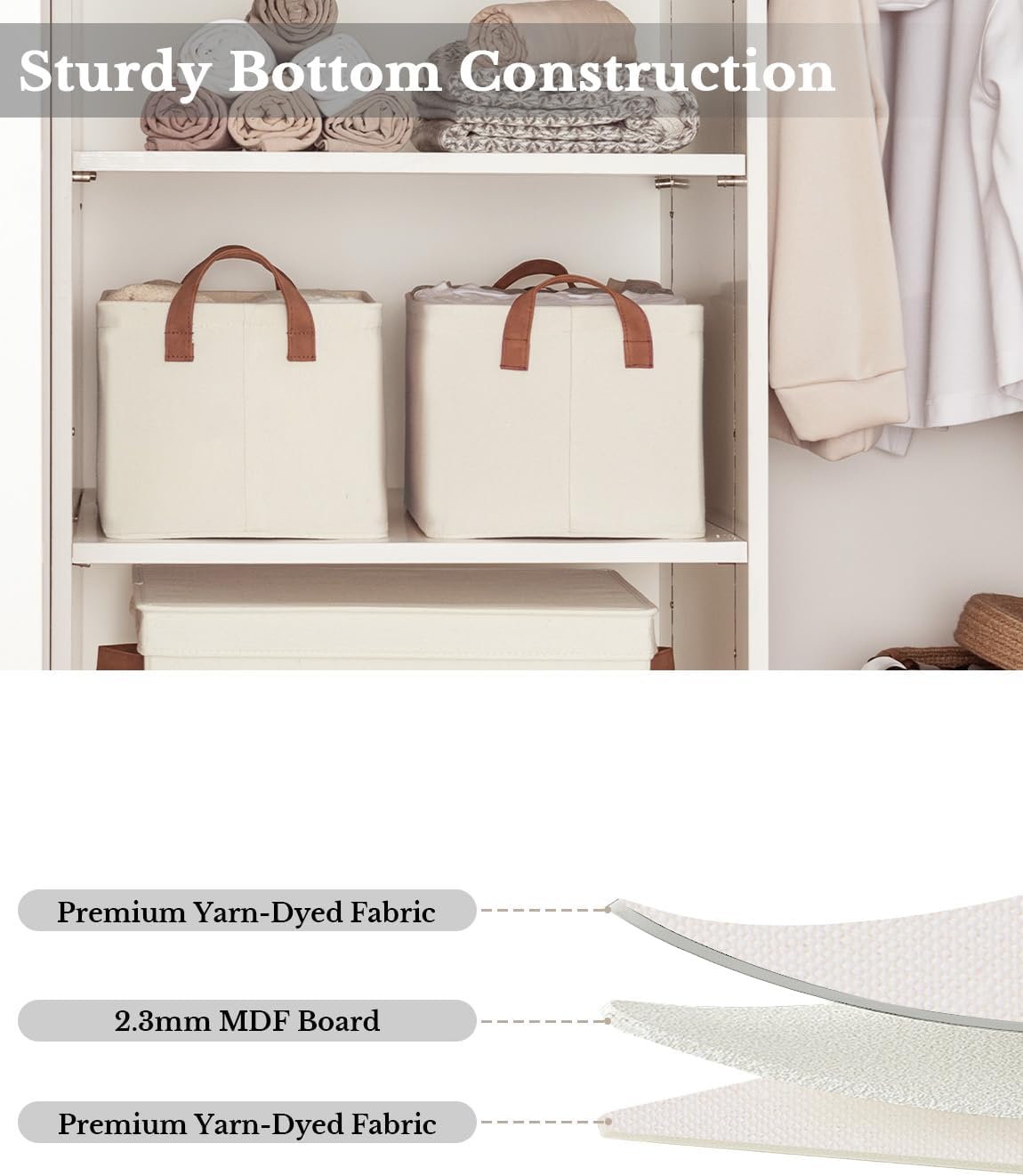 StorageWorks Storage Bins, Fabric Storage Bins for Shelves, Storage Baskets with Metal Frame, Closet Baskets and Bins with Handles, Natural Color, 2-Pack