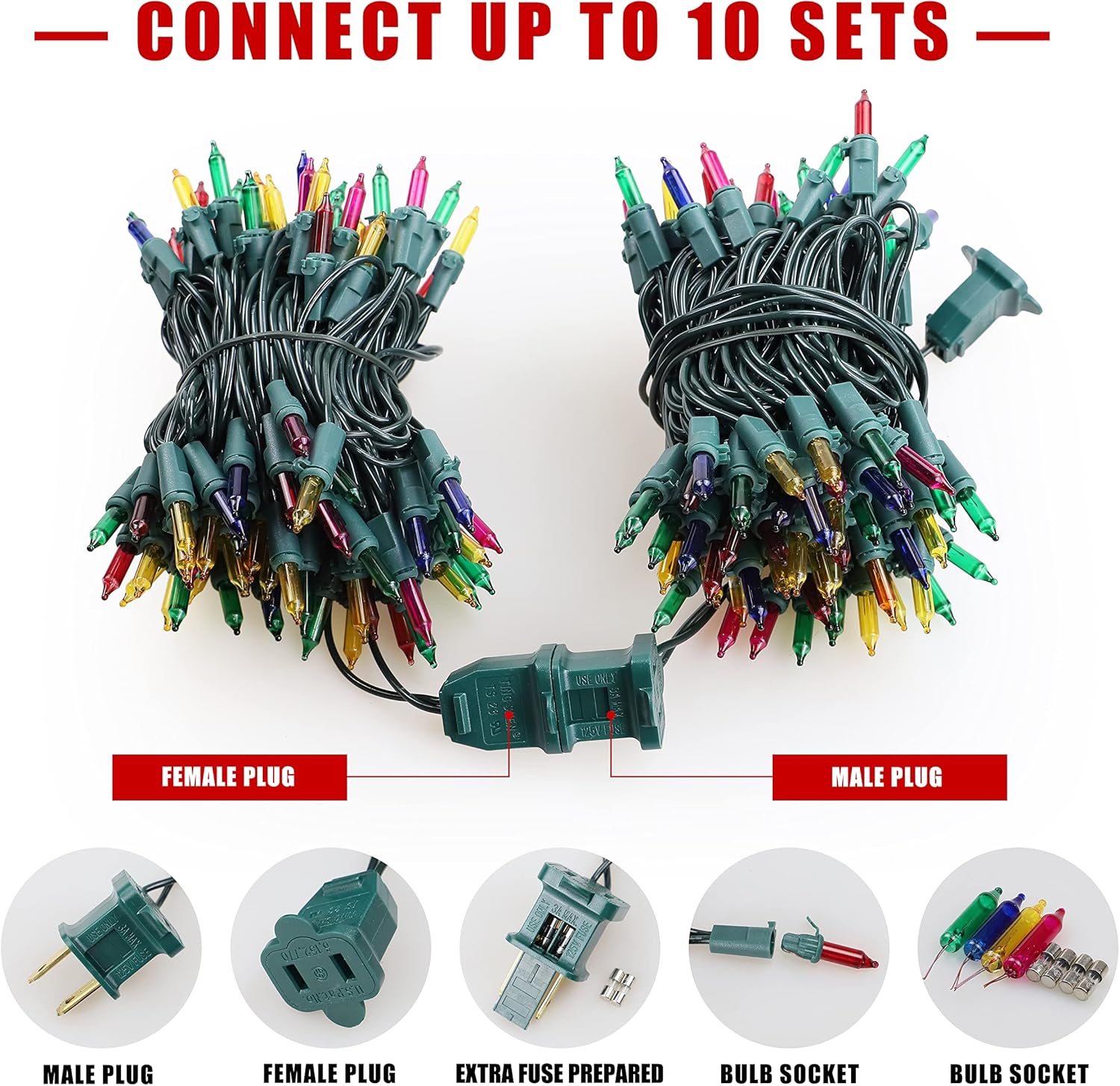 Hopolon Christmas String Lights,2 Pack 13ft 50Count Incandescent Mini String Lights Connectable, Waterproof Fairy Lights for Garden Xmas Tree Wedding Wreath Party Decoration (Multicolor 2 pcs)