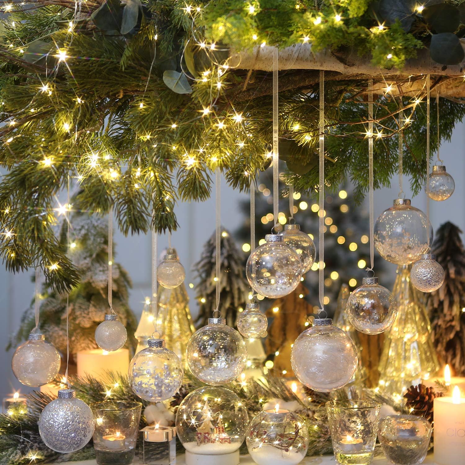 - DISMOUNTABLE TOP WITH RIBBON - Each ball ornament equips a dismountable metal top and comes a string thatโs already hook to the bulb for easy hanging. With the dismountable top, you can also stuff the clear ball with your favorite decorations