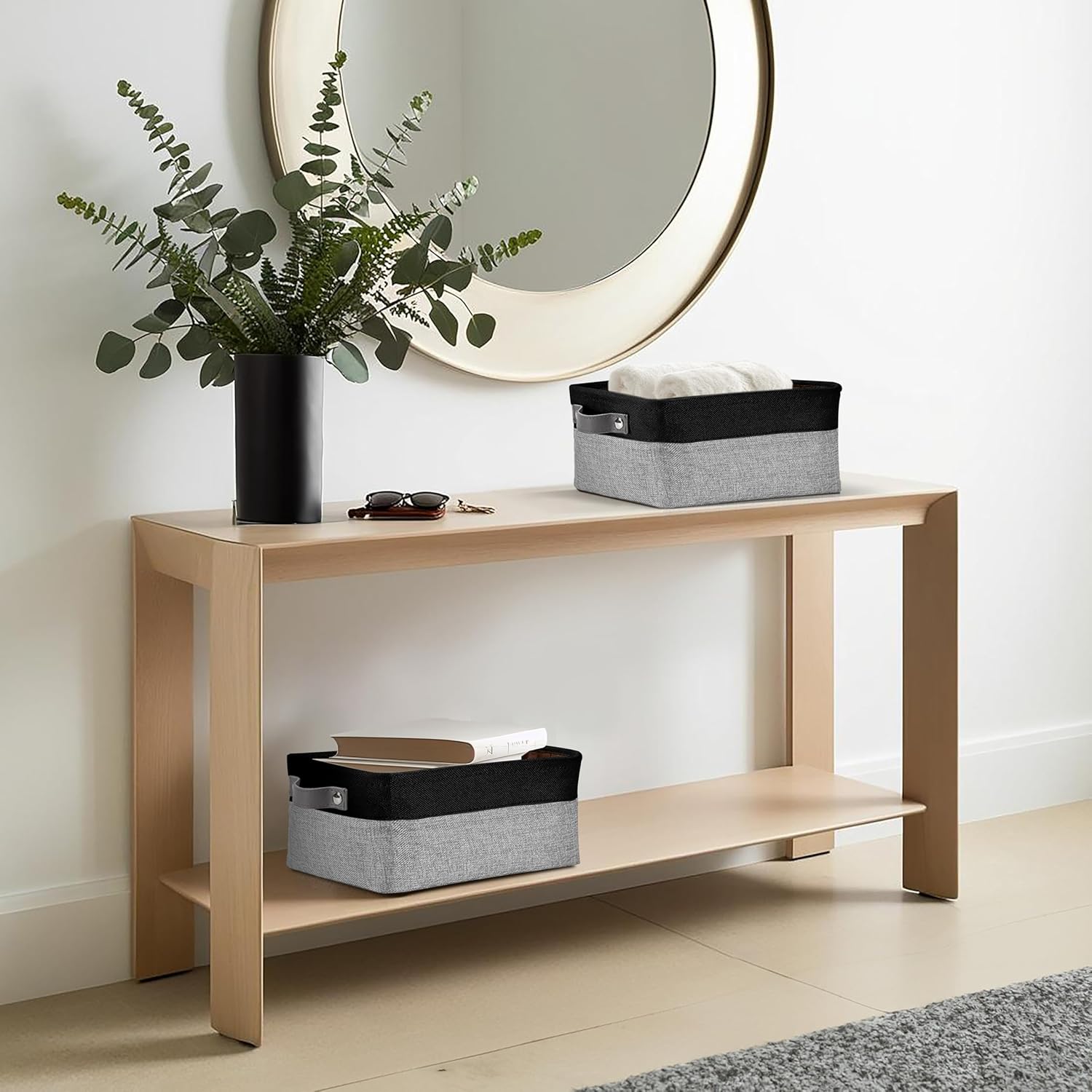 DECOMOMO Small Storage Basket, Closet Storage Bins, Baskets for Organizing Shelves (Grey & Black, Small - 6 Pack)