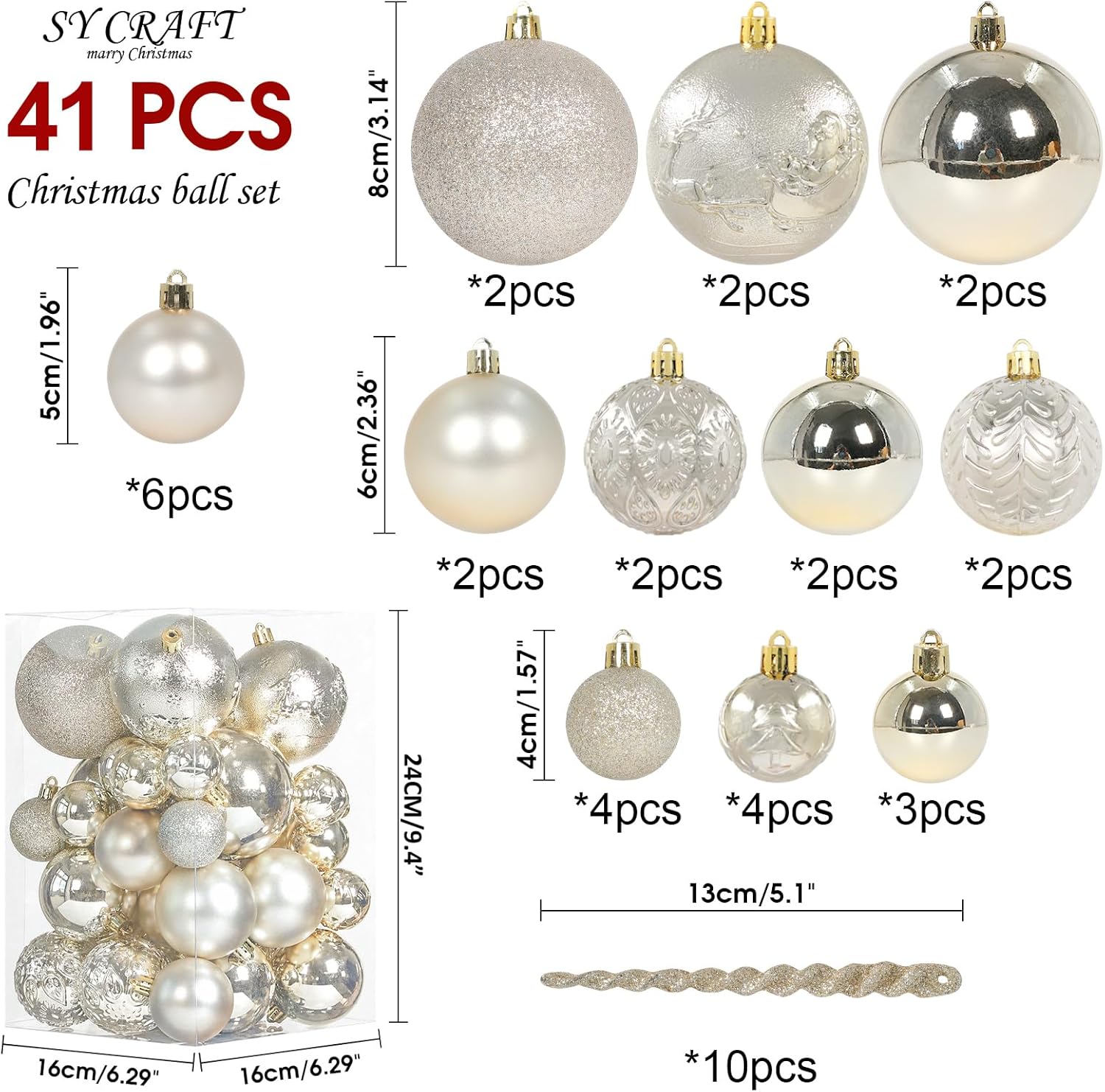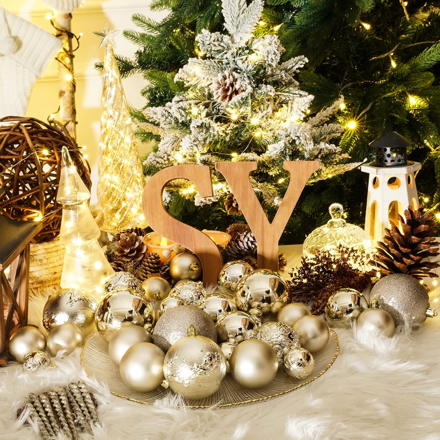 Christmas Ball Ornaments for Christmas Decorations - 41 Pieces Xmas Tree Champagne Gold Shatterproof Ball Ornaments with Hanging Loop for Holiday and Party Decoration