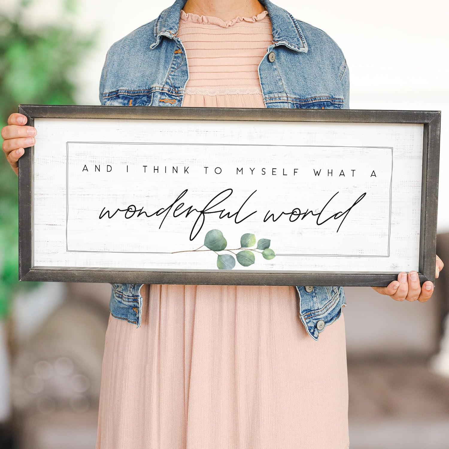 - Warm inspirational message: Framed wooden wall art reads “What a Wonderful World,” bringing uplifting style to your home. A rustic farmhouse accent that creates a welcoming atmosphere in entryways, living rooms, or bedrooms.