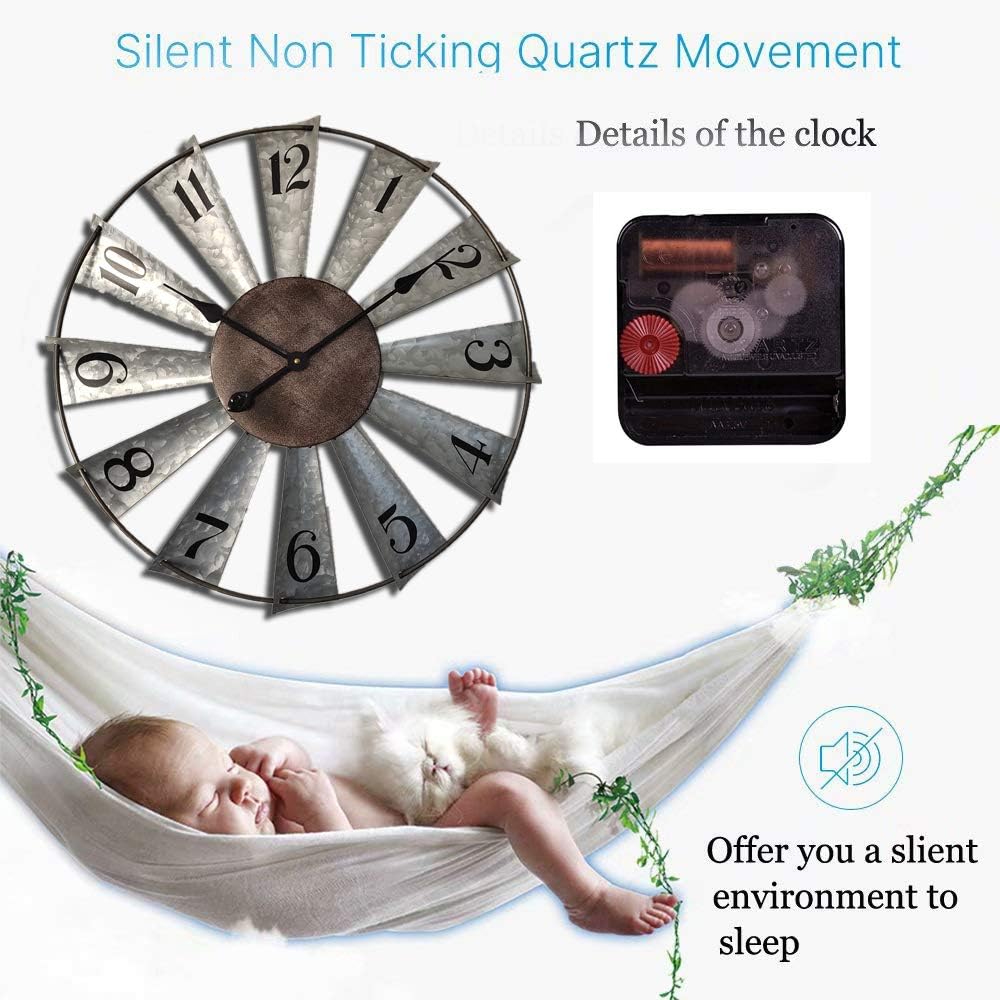 Mrocioa 24inch Windmill Distressed Metal Wall Clocks Rustic Large Decorative Clock Oversized Farmhouse Decor,Non Ticking,Battery Operated