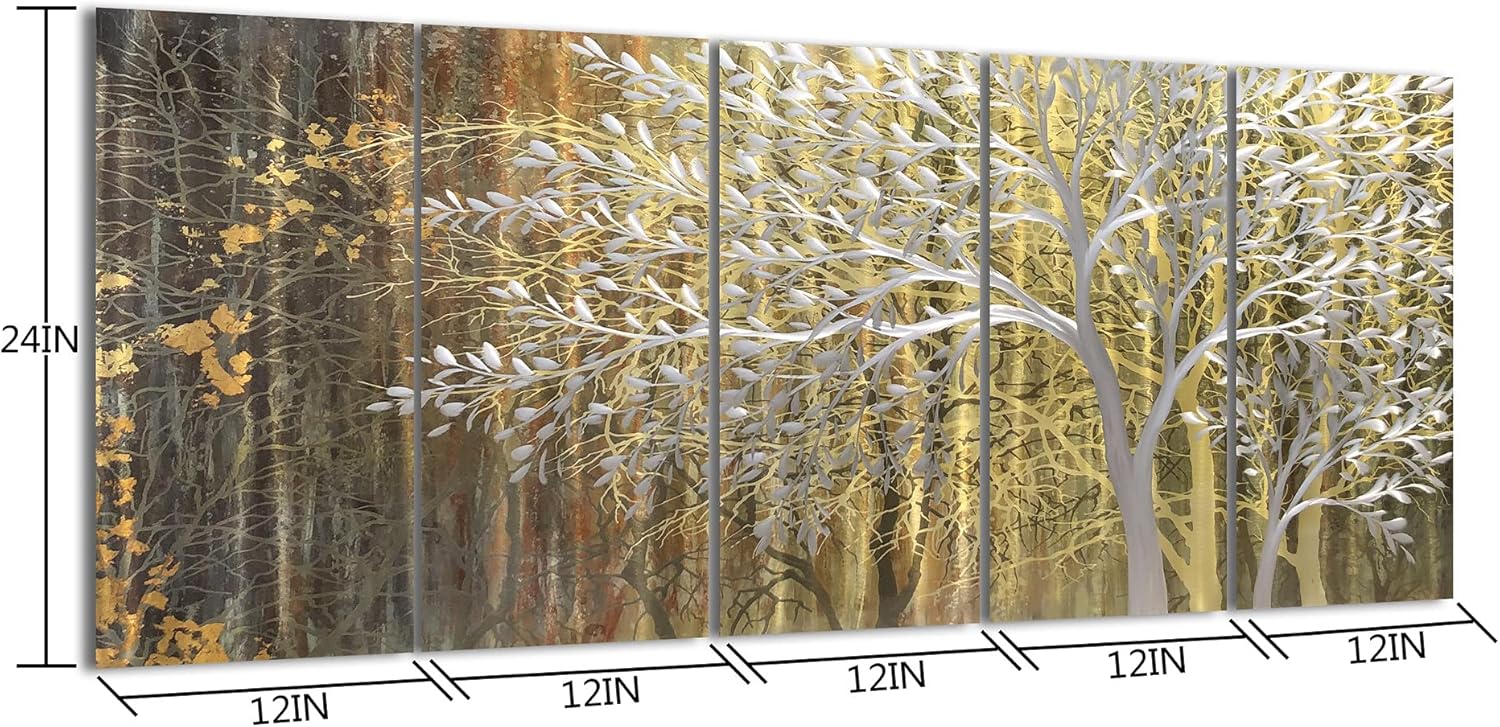 - SIZE: This Gold Metal Wall Art 24x64IN (Total 5 Panels)