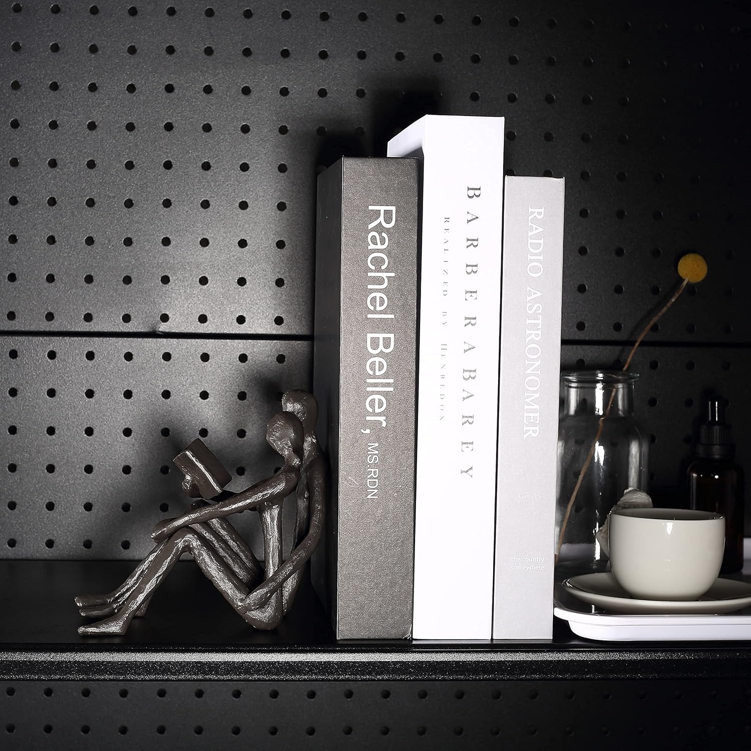 - HEAVY DUTY METAL - Each bookend is sturdy and made of cast iron. Theyโll prevent your books from sliding. The lovely couple also makes for heartwarming shelf decor.