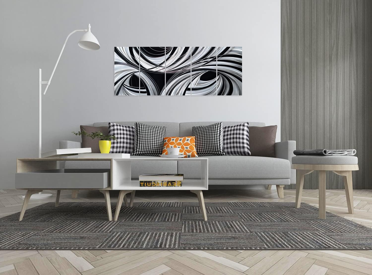 - SIZE: Black and White Metal Wall Art 24x64IN (Total 5 Panels)