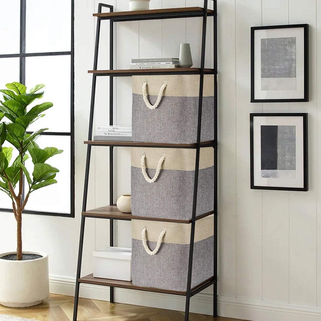 i BKGOO 3Pack Large Foldable Storage Bins,Collapsible Sturdy Cationic Fabric Organizing Storage Basket Cube with Cotton Handles for Home Office Shelf Clothes Toys Khaki-Grey 13×13×13 inch