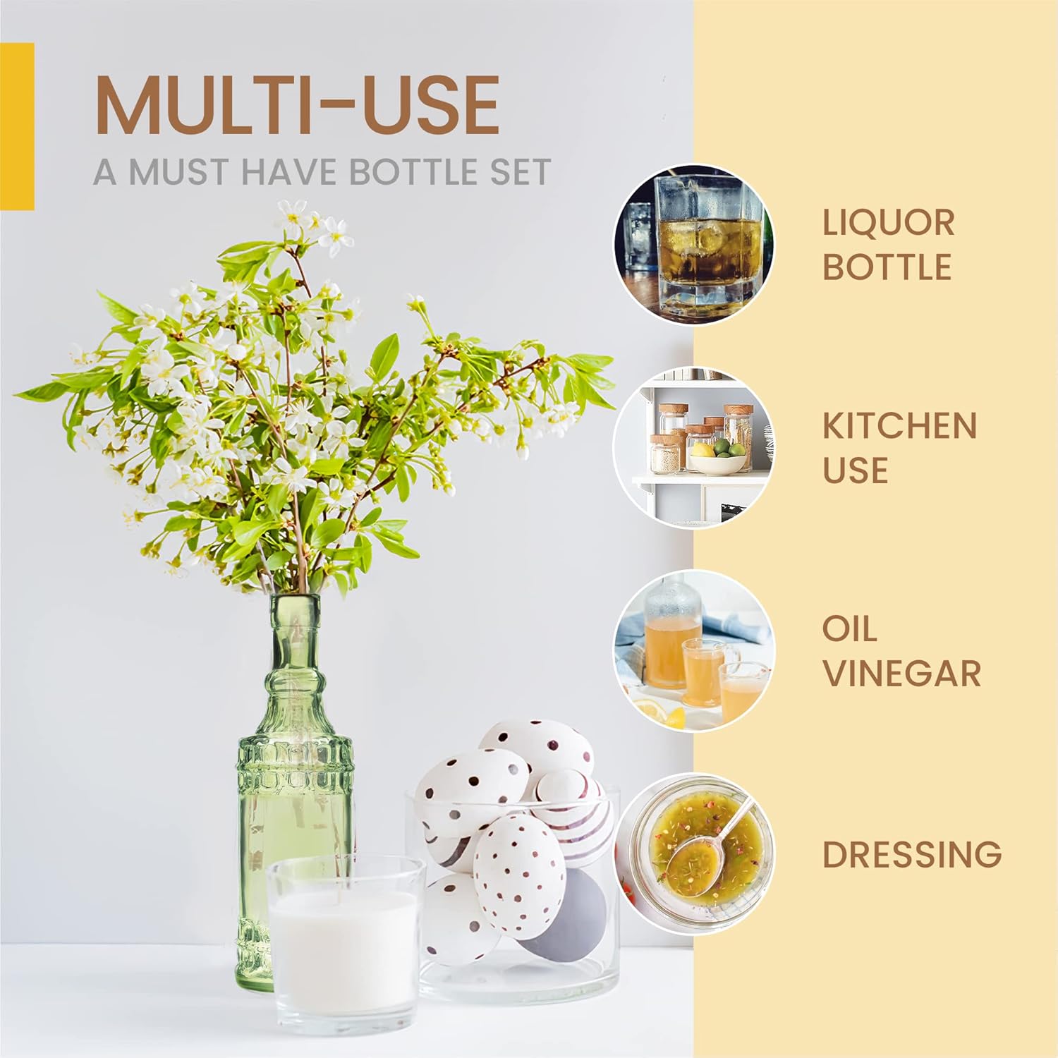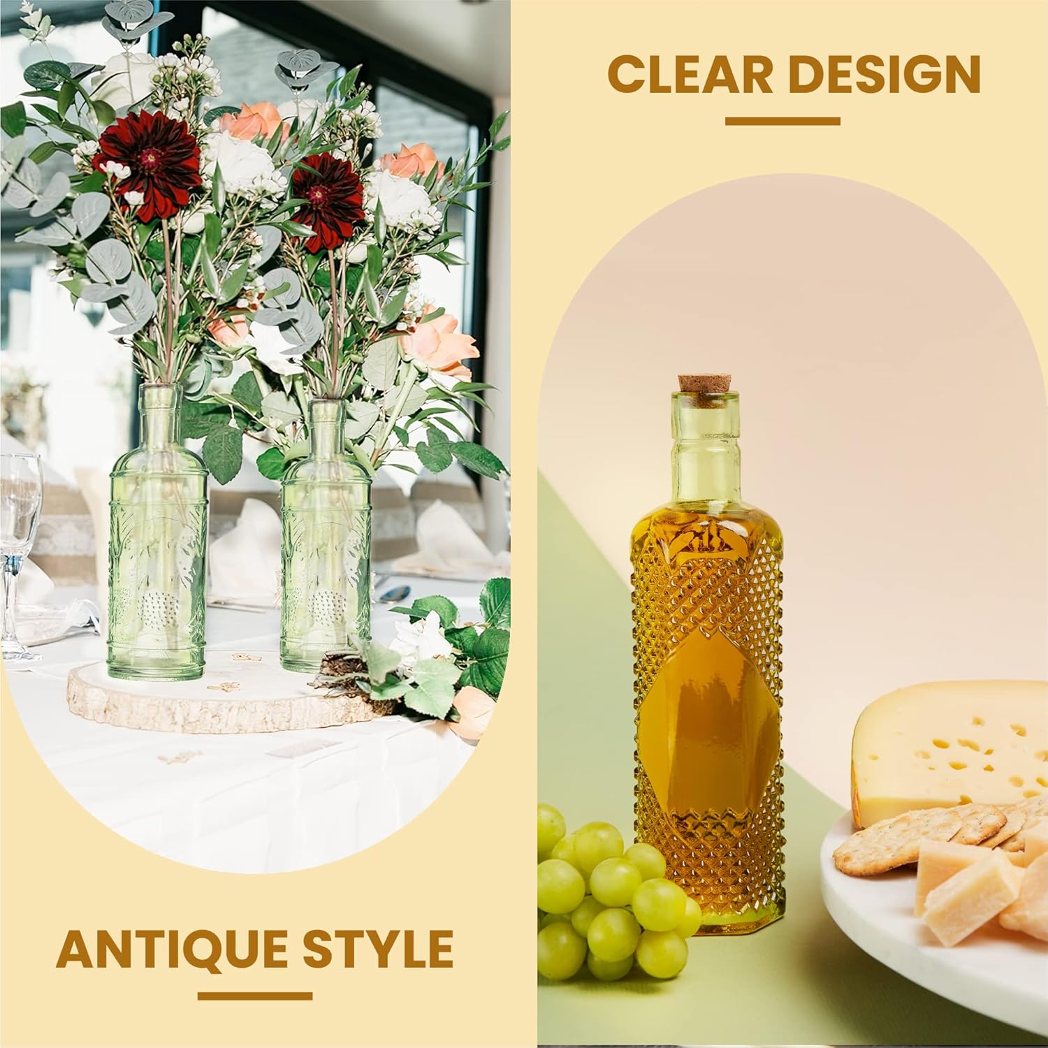 - Multi-Use: The 16oz capacity allows versatile use for kitchen, decoration, art projects, and more. Ideal for olive oil, liquor, bud vases, wedding favors, and more.