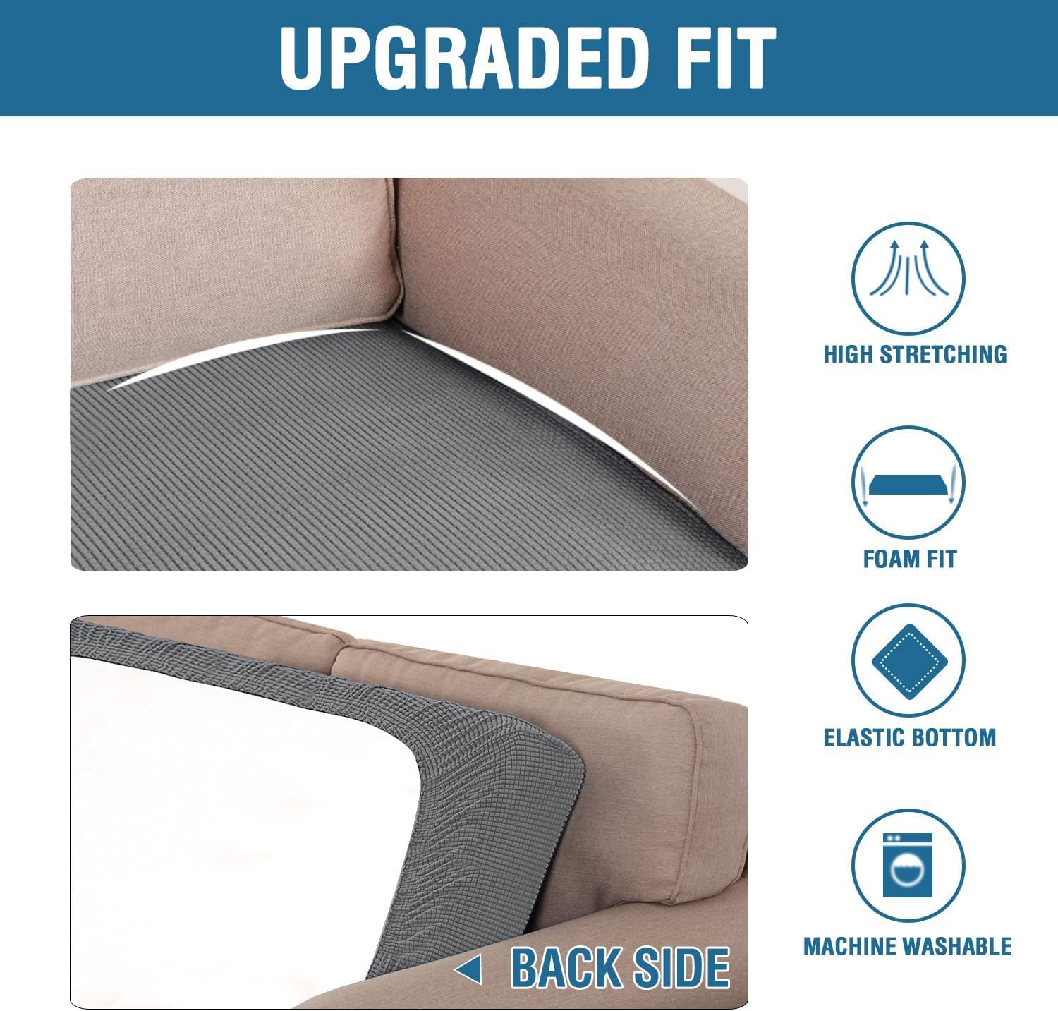 - NON SLIP: Effortless for installation (guide photos on selling page), sewn with thick elastic loops to cover the bottom edges. It is easy to install and take off, making your home more harmony, high recommended for both leather and cloth furniture