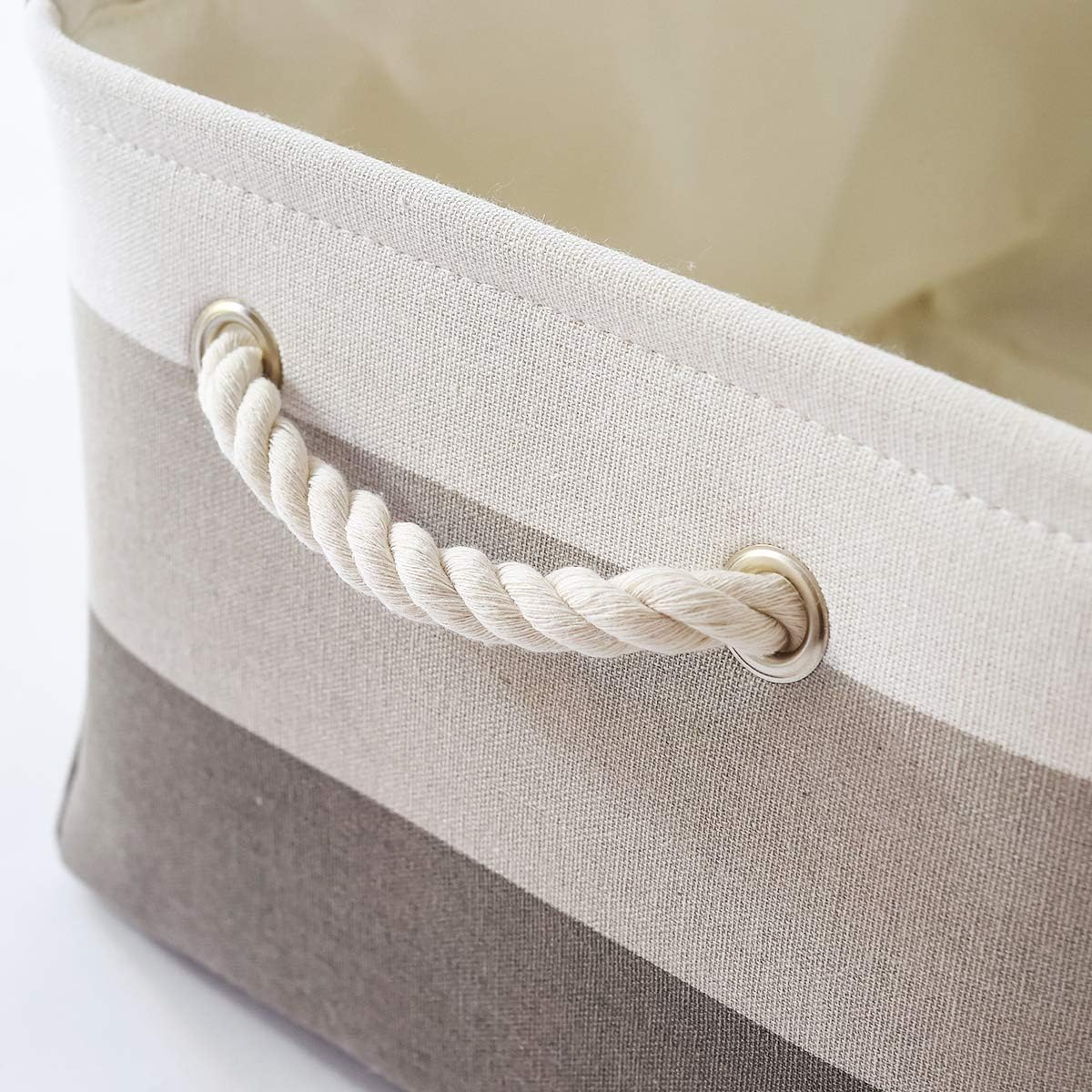 - High quality: The outer material of the storage box is made of imitation linen, with thickened EVA in the middle, refusing to sag, high quality can keep the storage box firm and stylish. The lining is thin cotton, easy to clean, just wipe with a wet sponge or cloth. The handle material is made of durable cotton and linen handle, wide and not strangled hands.
