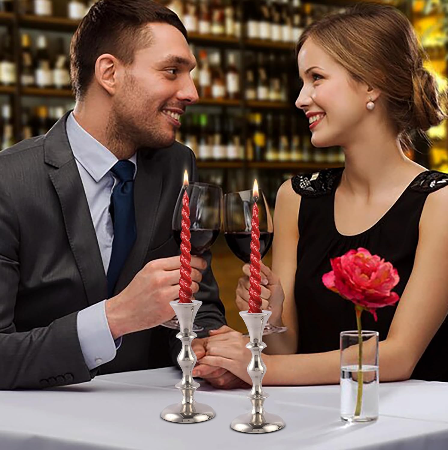 Rely+ Silver Candle Holders Set of 2 Decorative Centerpiece Table Candlesticks Holders for Taper Candles Home Decor Easter Candle Holders for Dinner Party Wedding Decorations