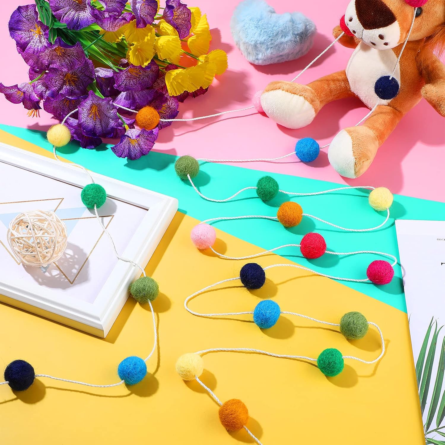 - Package content: Including 3 pieces rainbow garland, comes with 1 pack of tassel garland which comprises 12 pieces of tassels in total, 12 colorful felt pennant flags and a 2.8 meters rope and a threading pin, 24 pieces of balls on each ball garland, enough ornaments for you to decorate your room to be warm and beautiful