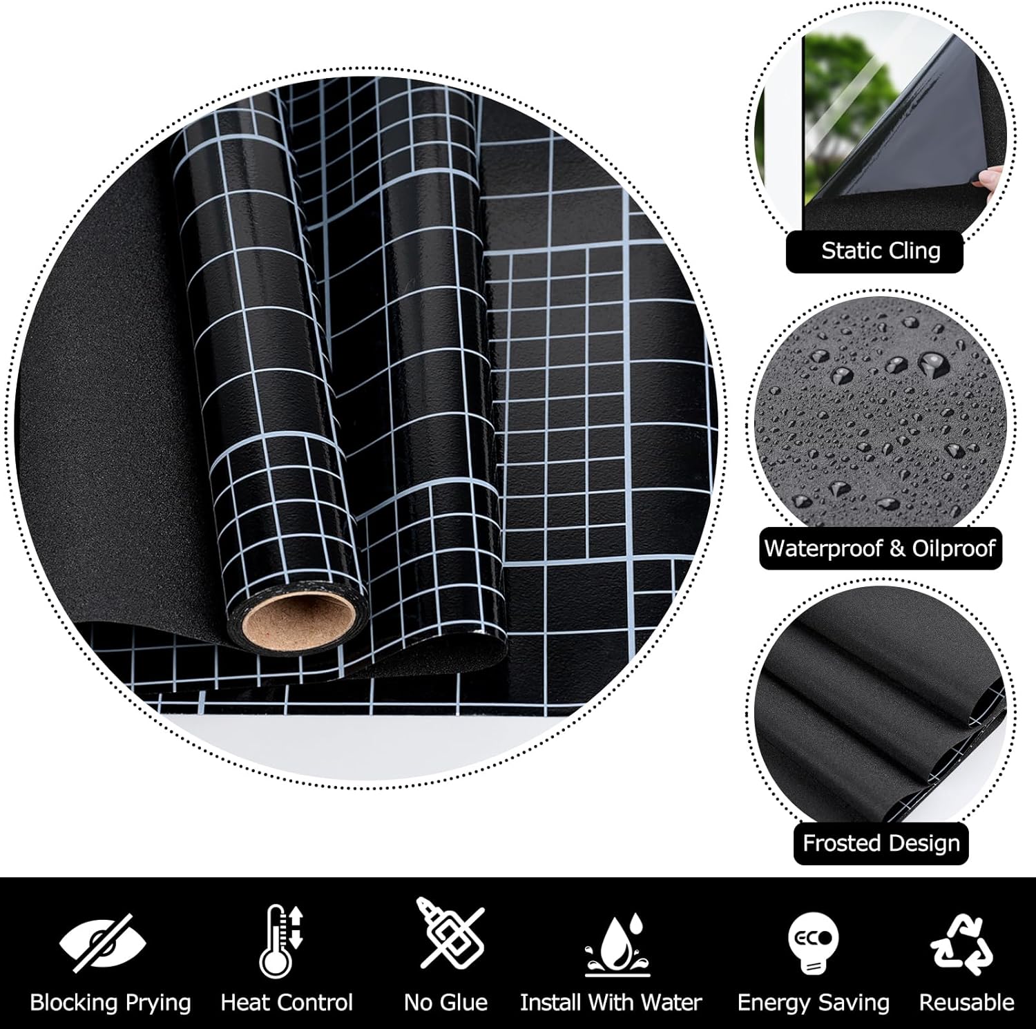 HIDBEA Blackout Window Film,100% Light Blocking Room Darkening Window Privacy Film,Frosted Glass Window Film Heat Control, Removable Window Cover Tint for Day Sleep (Black,17.7in x 6.5ft)
