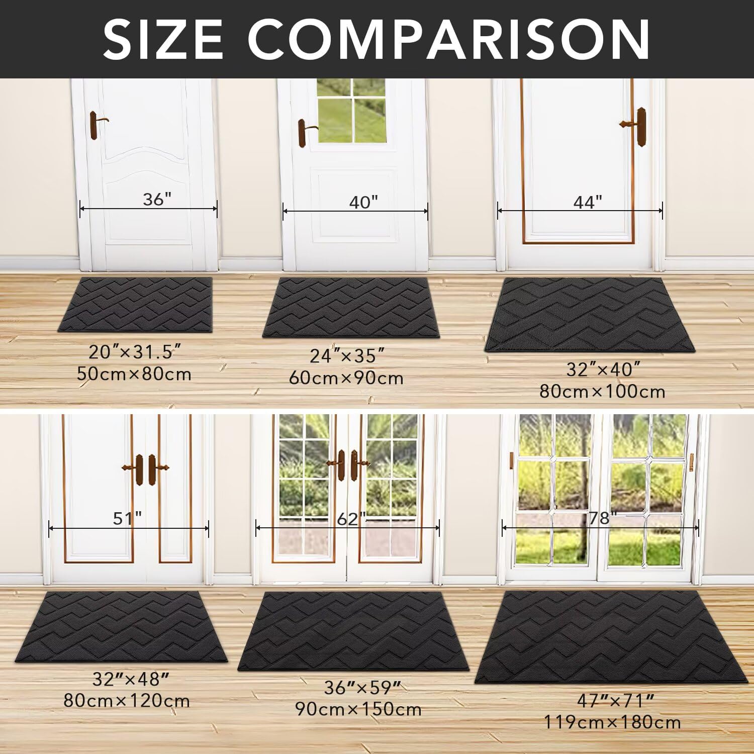 - WIDE USE: Our doormat widely used for all weather, works as front door mat, outdoor door mat, welcome door mats, indoor mats for entryway, shoe mat, dog doormat, floor mats, ect. It can scrap off dirt, water, dust,grit, sand,mud, slush, sleet, grass or retain, snow.