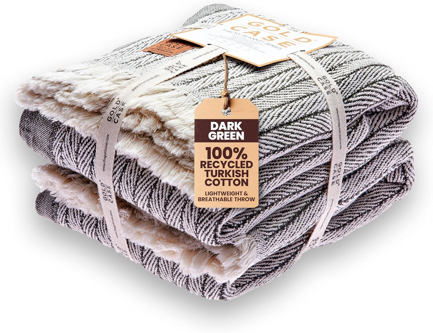 Gold Case Throw Blanket for Couch – 100% Recycled Turkish Cotton Blankets – Elegant Decorative Throw Blankets for Living Room Sofa – Woven Throws for Couch – Vintage Dark Green – 50x60 (Set of 2)