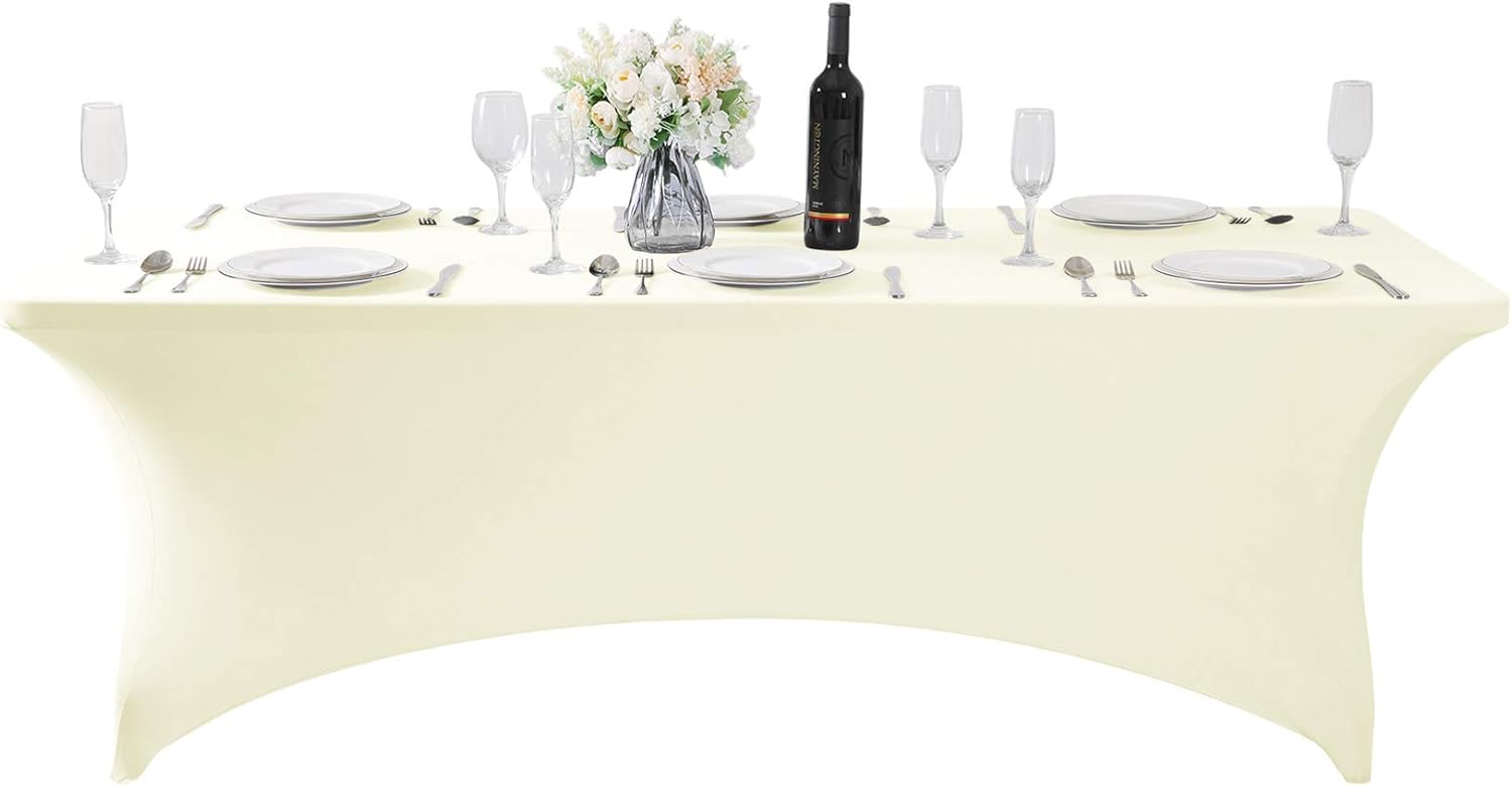 2Pack Spandex Table Cover for 8FT or 4ft or 6ft Table Universal Fitted Stretch Tablecloth for Party, Banquet, Wedding and Events-Ivory