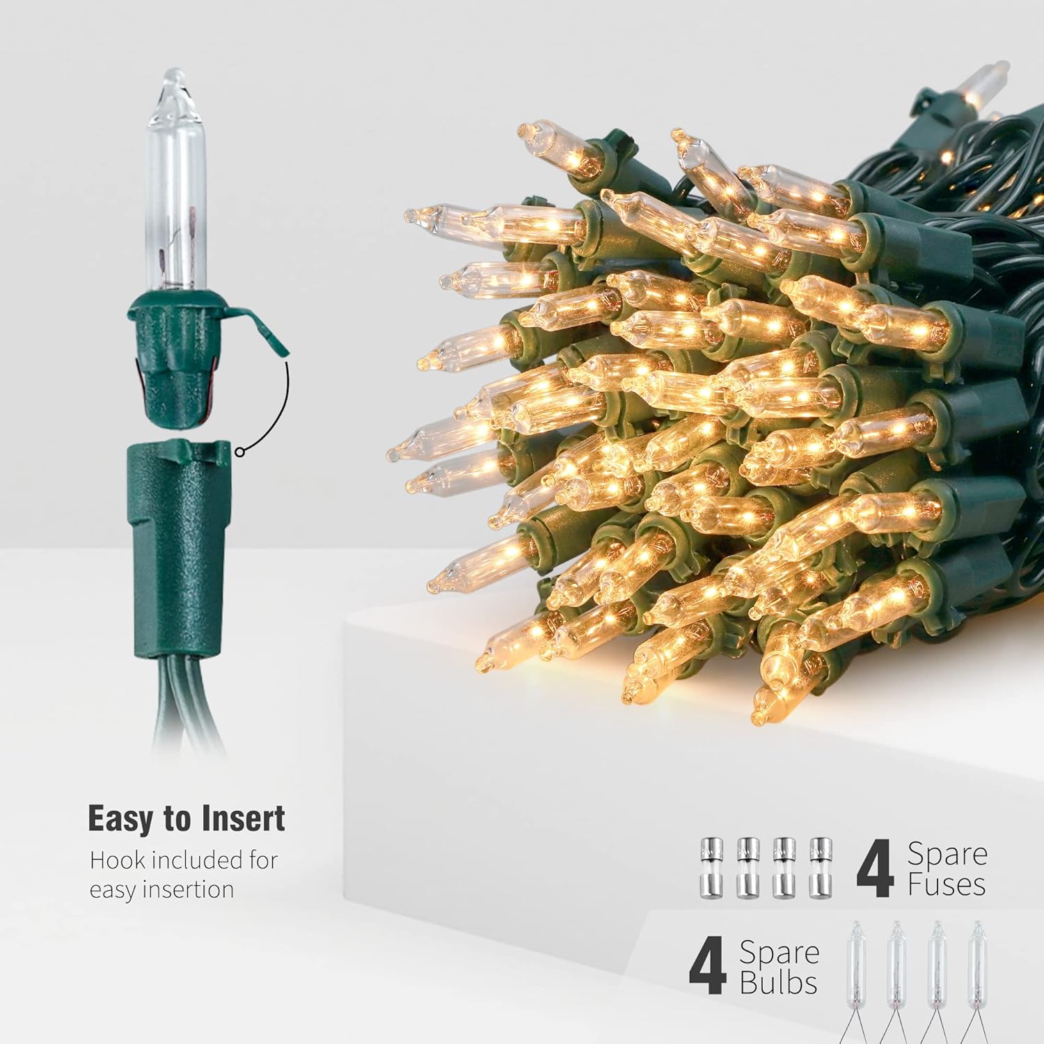- Green Wire Christmas String Lights:Beewin old-fashion incandescent Christmas lights,2PACK 50Count 13Feet Clear Christmas Mini String Lights,each set comes with 4 Extra Bulbs & 4 Replacement Fuses.Perfect for indoor or outdoor decoration.