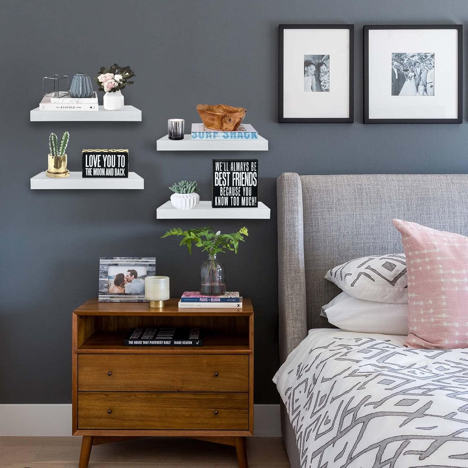 QEEIG Floating Shelves for Wall Bathroom Shelf Bedroom Kitchen Living Room Farmhouse Small Book Shelf 16 inch Set of 4, White (015-W4)