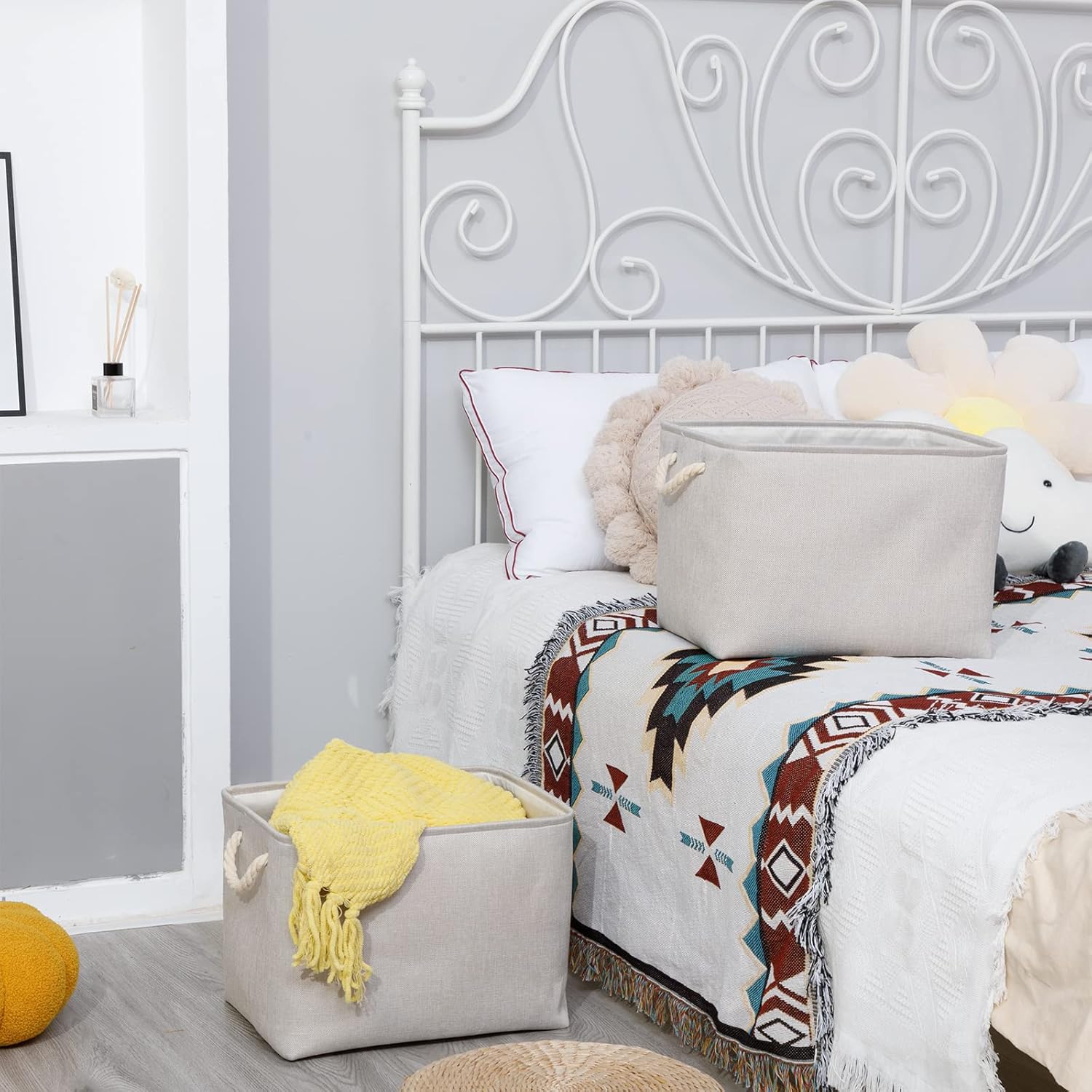 - Foldable Baskets Set: Simply fold the canvas basket down flat for space-saving storage when not in use or when needing to transport. If you mind the creases, you can use an iron to iron the creases in the basket. If you do not use an iron, the creases will slowly disappear as you store your items