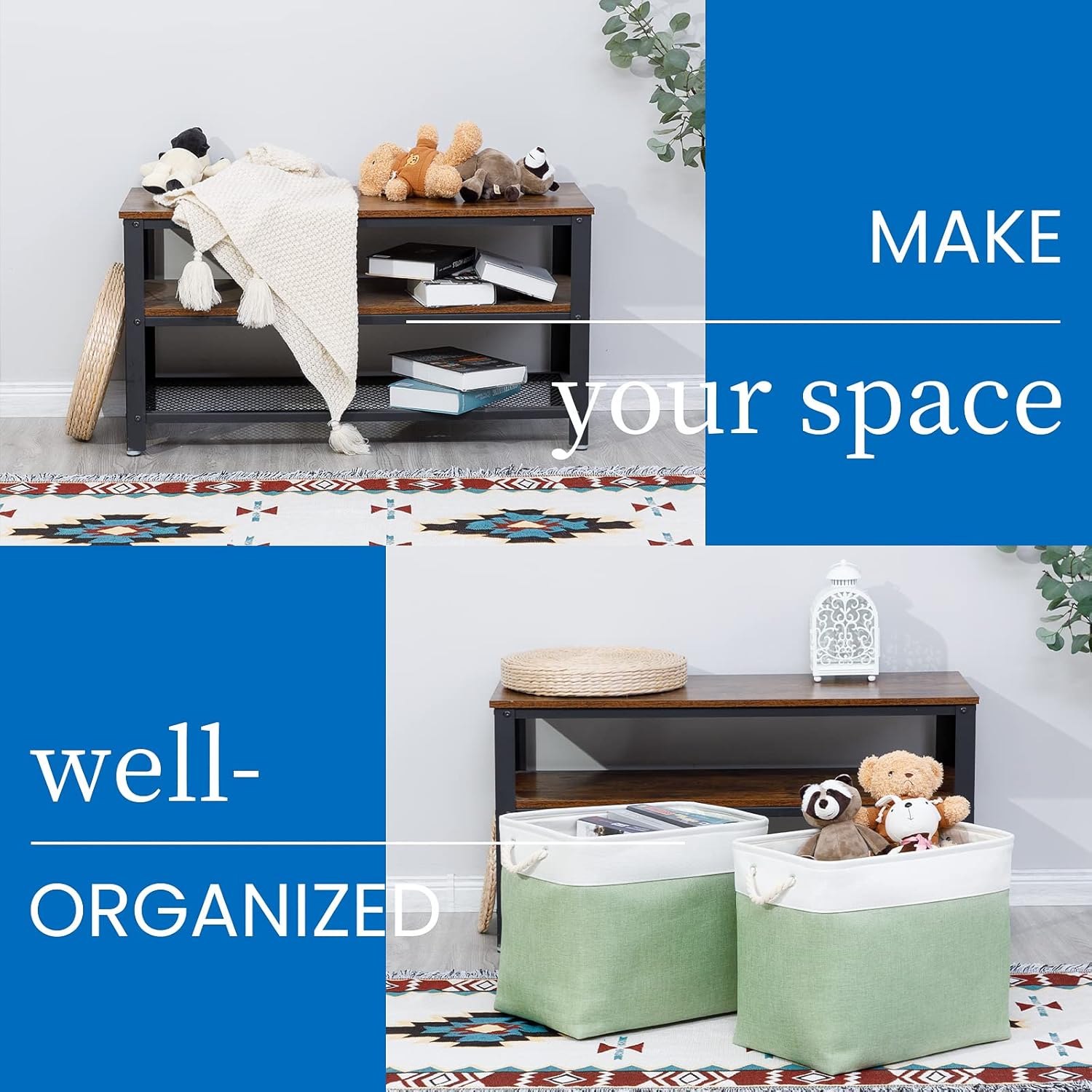 • [Easy to Clean] The fabric baskets are easy to clean, dusting the basket with a soft dry cloth is recommended. Spot clean with light soapy water when needed. Not recommended to machine wash because there are a metal frame support inside