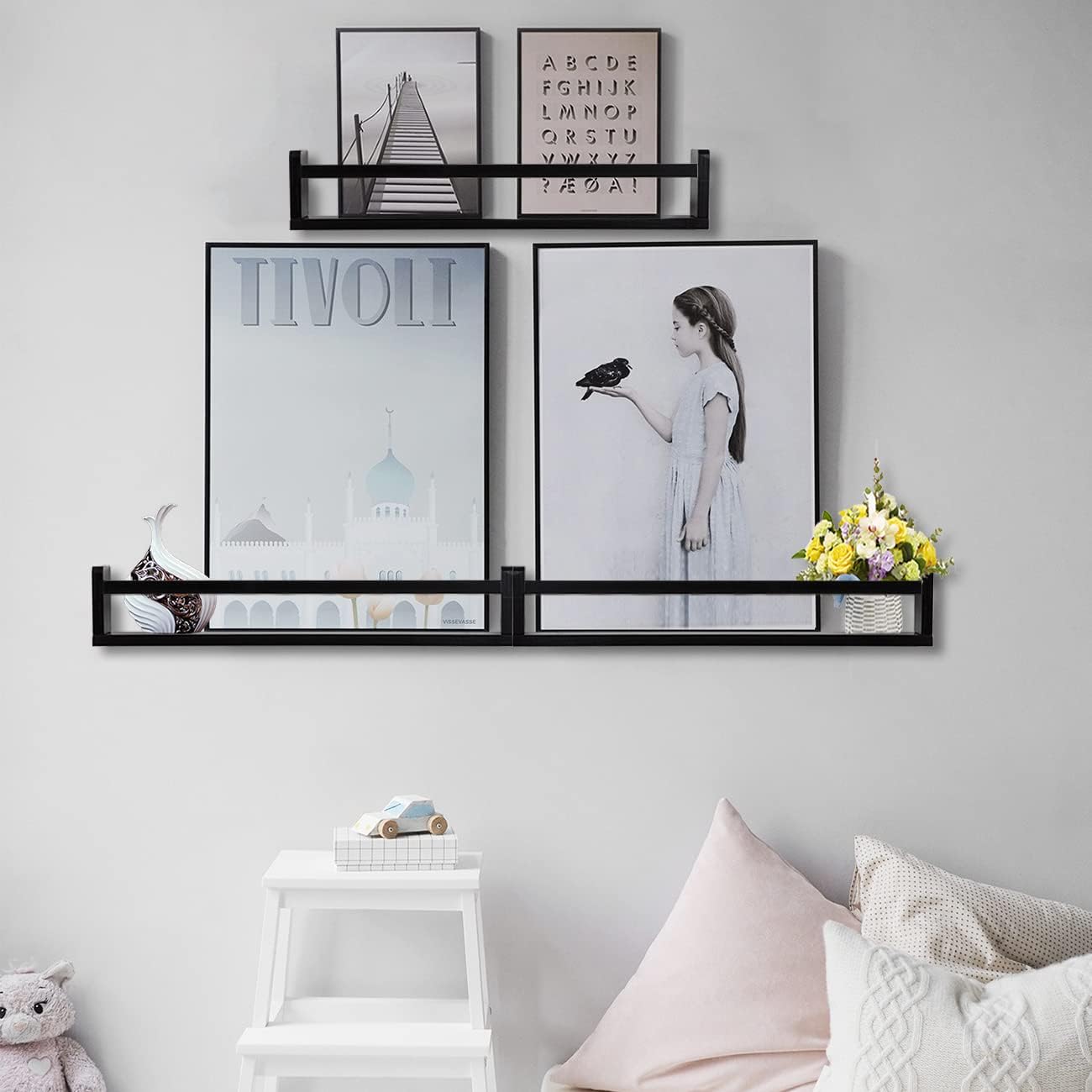 AZSKY Classic Nursery Book Shelves Black Wooden Floating Shelves Wall Bookshelf for Bathroom Decor Kitchen Spice Rack Organizer Kids Room 24 Inch Set of 3