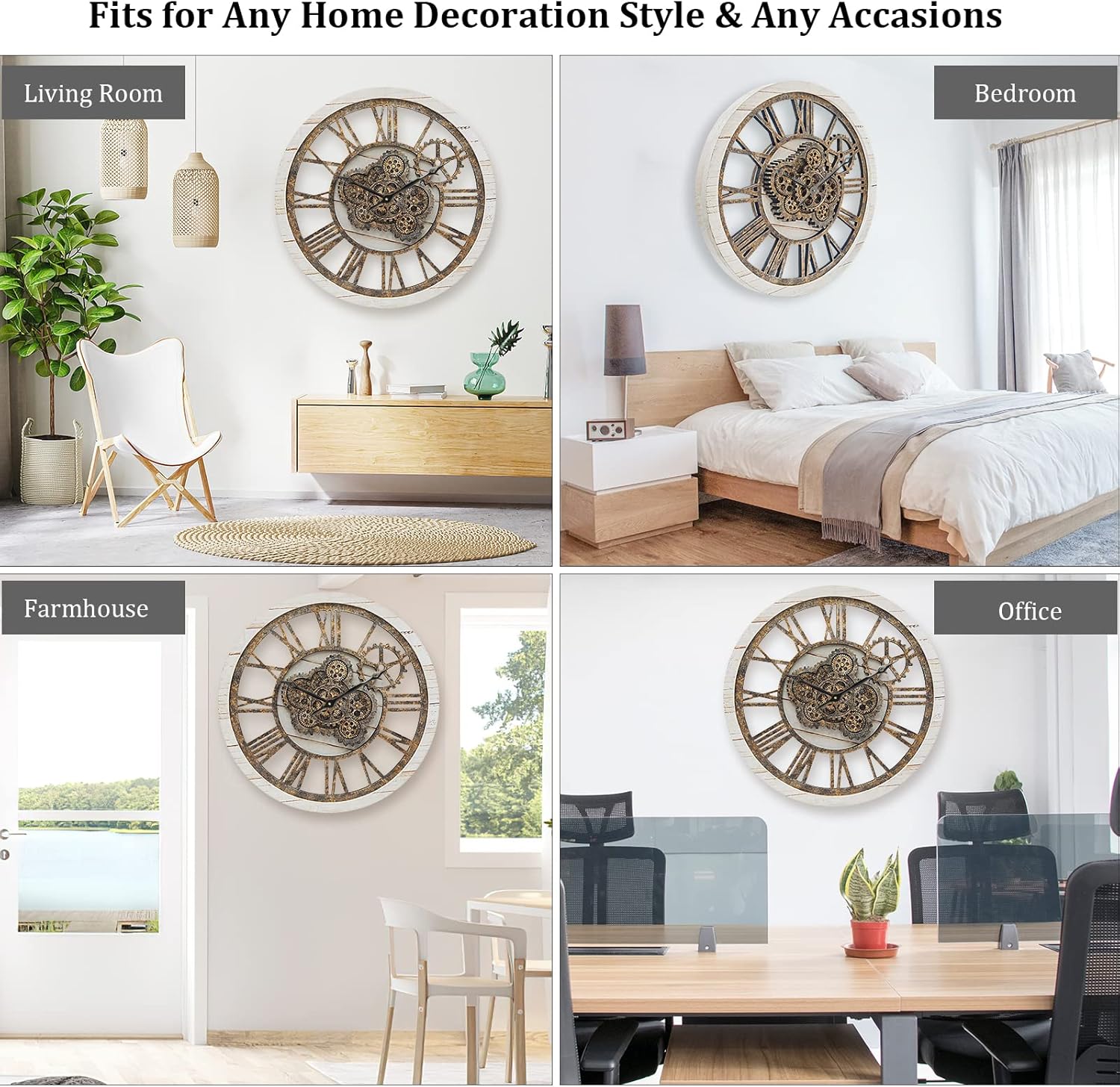 HOIBAI Wall Clock, 24 Inch Moving Gears Clock Large Wall Clock for Living Room Decor Rustic Vintage Industrial Steampunk Farmhouse Big Clock for Home Kitchen Bedroom Office
