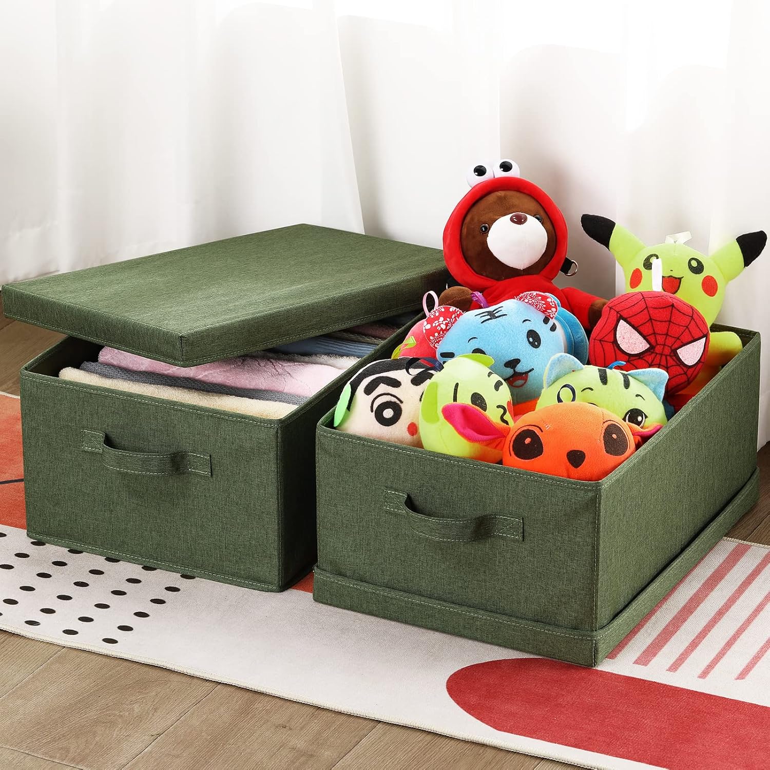HOONEX Storage Bins with Lids for Organizing, Pack of 2, Storage Boxes with 2 Carrying Handles and Sturdy Heavy Cardboard, 16.5" L x 11.8" W x 7.5" H for Shoes, Books, Clothes, Olive
