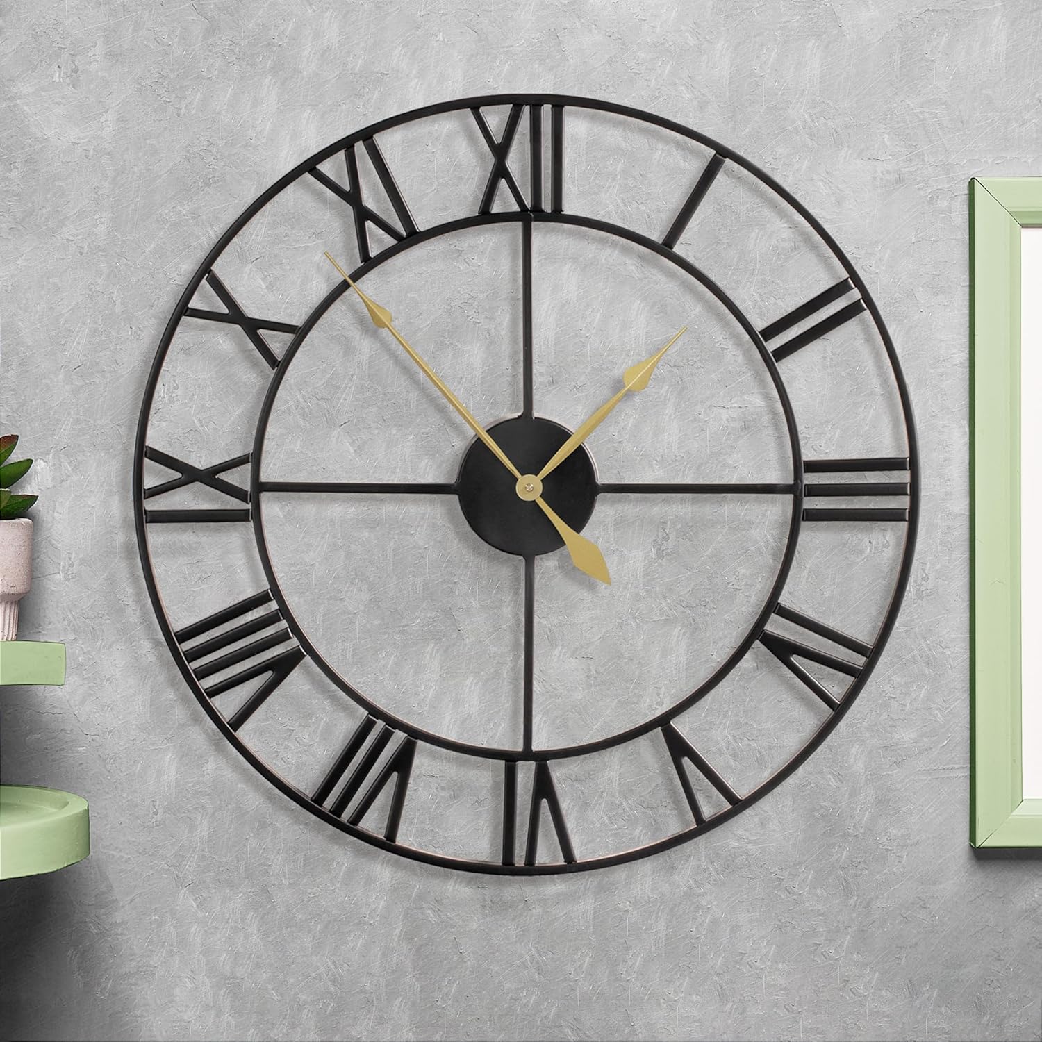 • 【INDUSTRIAL CLOCK】Large retro metal clock in hollowed-out design, frame of the wall clock is hand-made by solid iron, and high- quality materials ensure the robustness and retro appearance of the Roman wall clock.