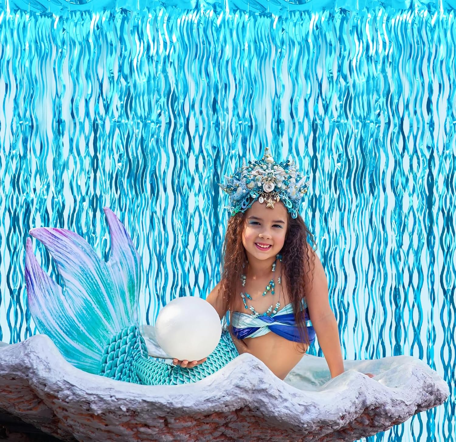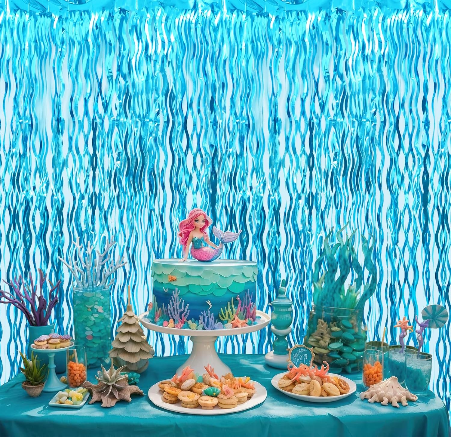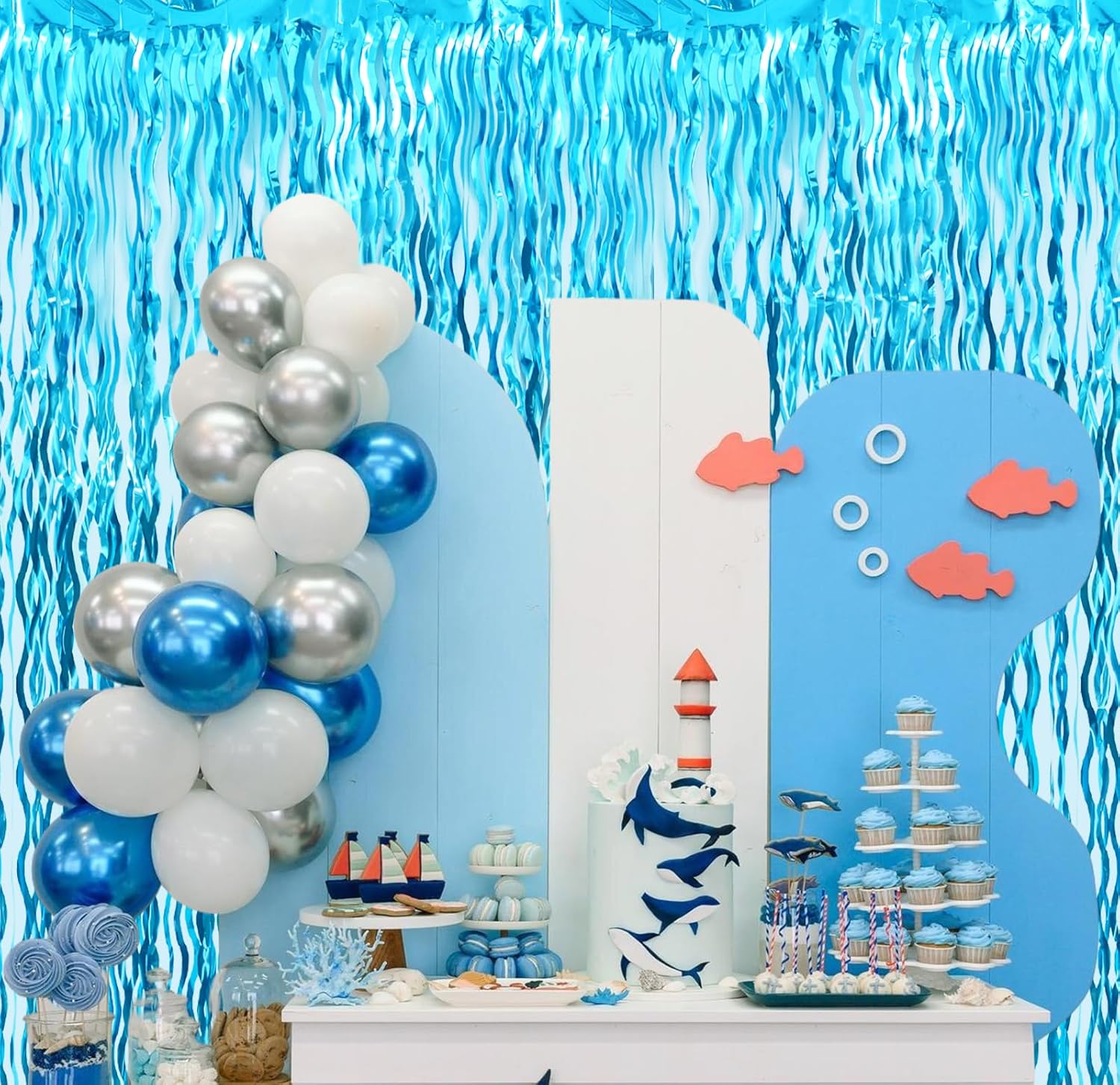 - Package Includes:5 pack wavy light blue foil fringe curtain,3.2 ft x 6.5 ft each,suitable for hanging on a door or coverage a wall fully