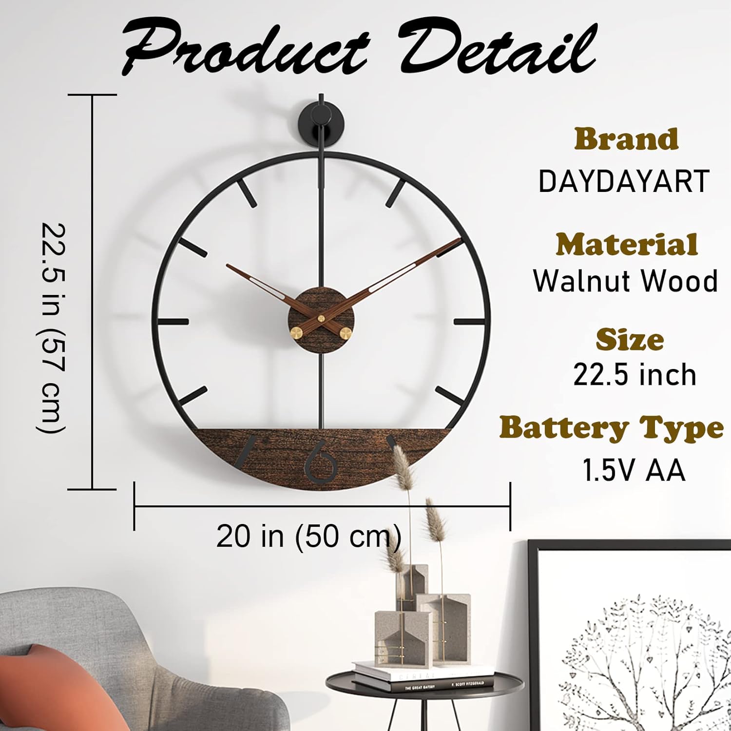 - Great Decoration For Your Home: 20×22.5 inches (50×57cm) large wall clock is a suitable size for your home to enhance the artistic taste. Great decorations for living room, bedroom, kitchen, office, study, etc. It's ideal gift for yourself and friends on a festival or anniversary