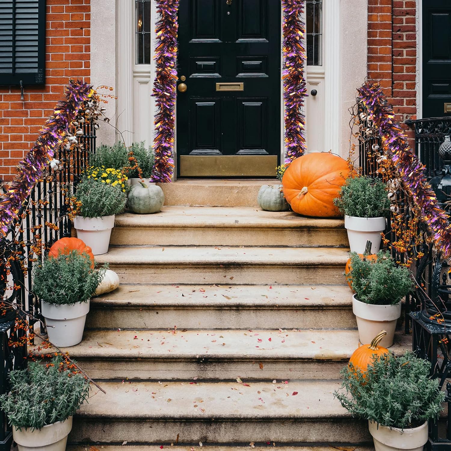 - FESTIVAL THEME: These Halloween tinsel garlands are designed in classic black, orange and purple colors, cater to the theme of Halloween, beautiful and shiny appearance, bring happy festival atmosphere, leave you unforgettable memory
