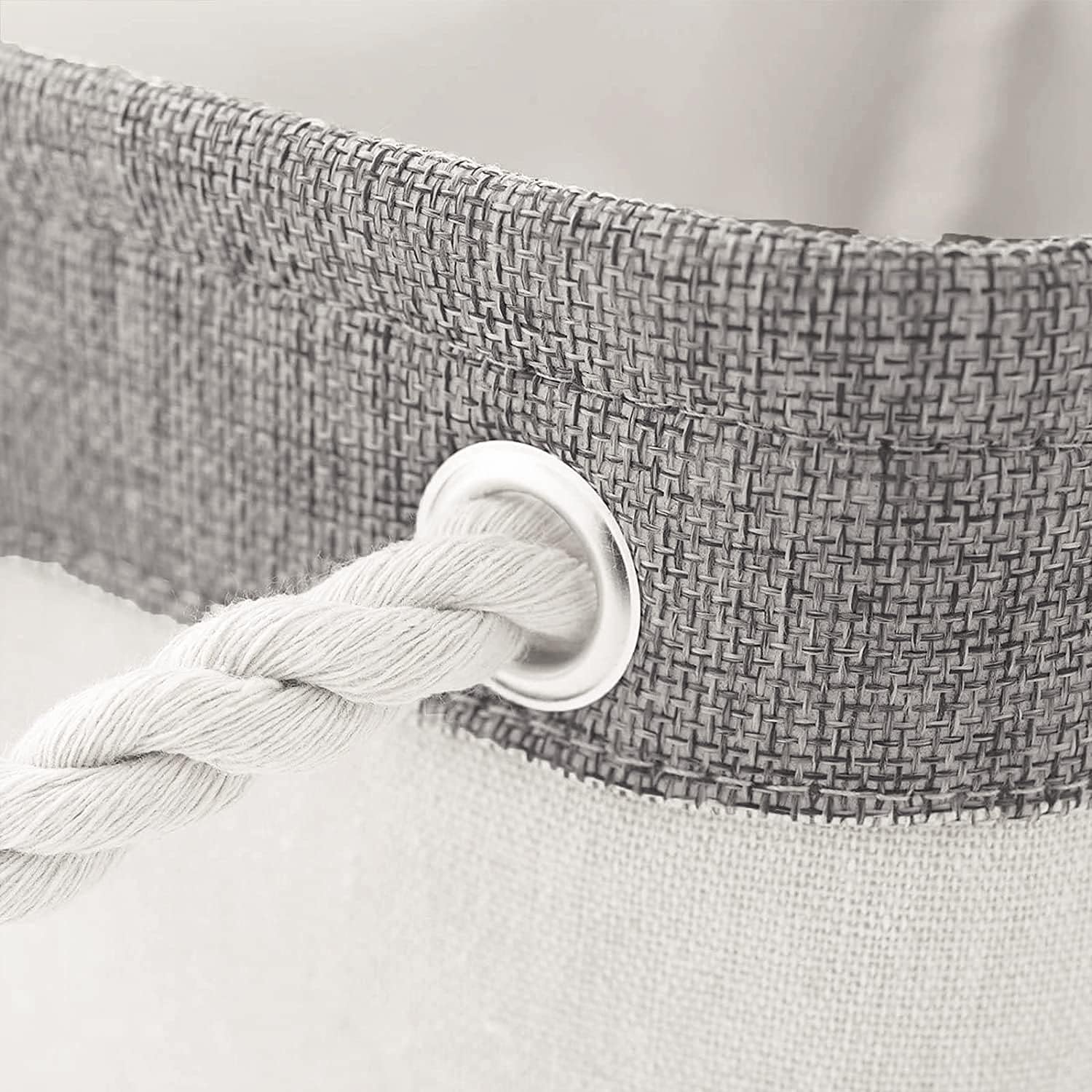 - Made of linen and thicken environmental EVA for reliable performance. Dimensions (each): 11.8 (L) x 7.9 (W) x 5.2 (H) inches.This collapsible basket set provides attractive, lightweight storage. Saves space when not in use and collapses flat for easy storage. It helps keep a room looking neat and tidy. The neutral color combination fits most décor while the two side carry handles make it easy to carry