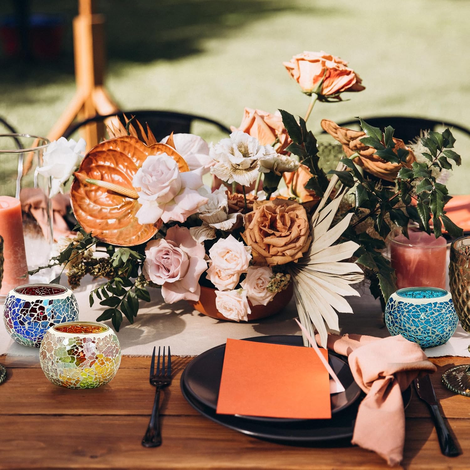 SHMILMH Mosaic Glass Candle Holder Set of 4, Votive Candle Holders Handmade Cracked Tealight Holders for Fall Christmas Diwali Home Decorations, Diwali Gift