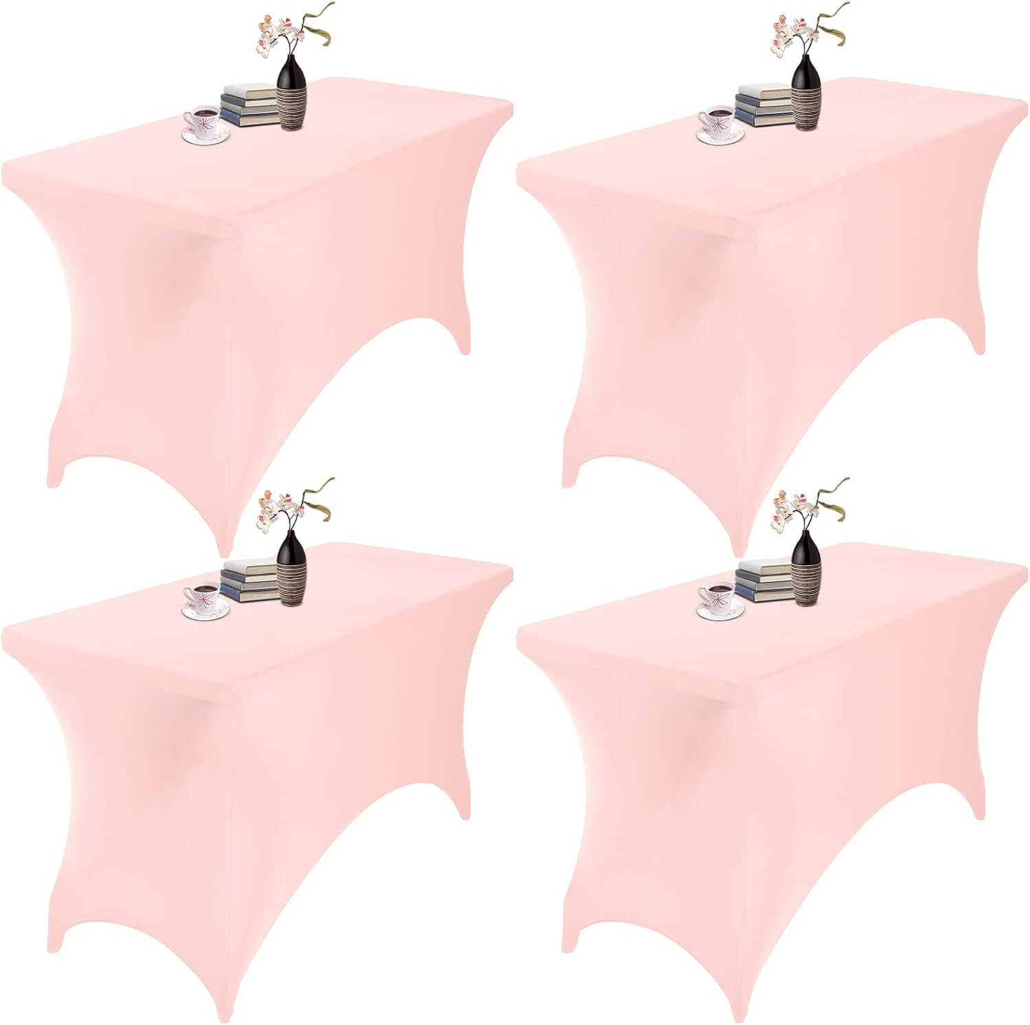 4Pack Spandex Waterproof Table Covers 4ft,Spandex 4ft Waterproof Table Cover for Party,Wedding, Banquet, and Events(Blush Pink)