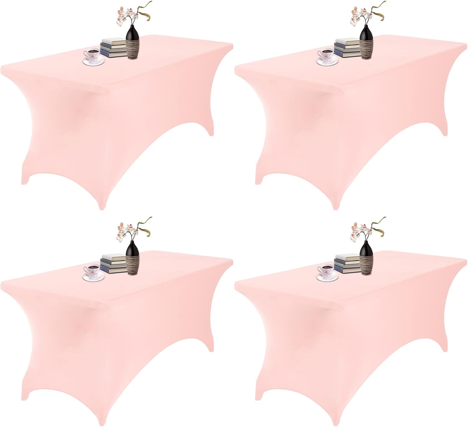 4Pack Spandex Waterproof Table Covers 6ft,Spandex 6ft Waterproof Table Cover for Party,Wedding, Banquet, and Events(Blush Pink)