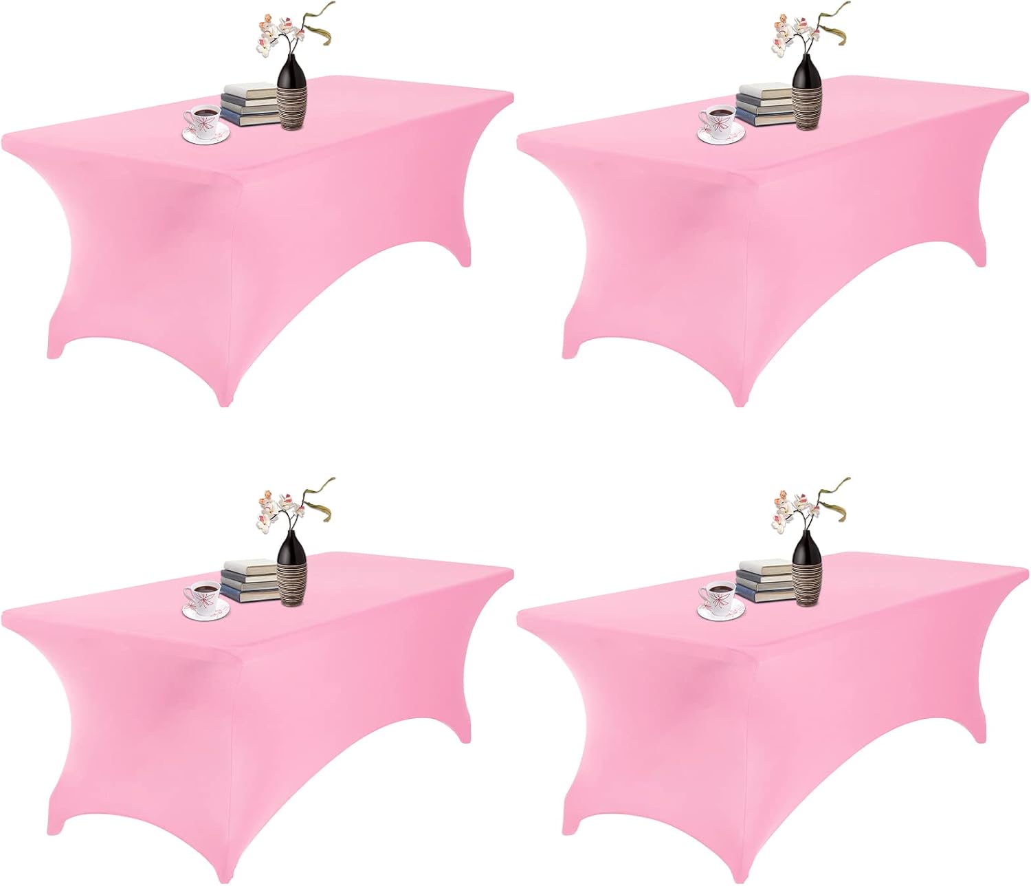 4Pack Spandex Waterproof Table Covers 8ft,Spandex 8ft Waterproof Table Cover for Party,Wedding, Banquet, and Events(Pink)