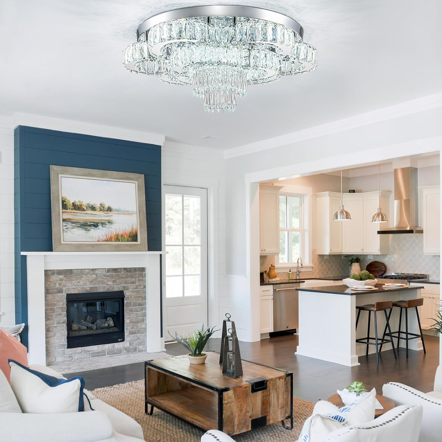 21 Inch Crystal Chandelier LED Flush Mount Ceiling Light Fixtures Luxury Chandeliers for Living Room Bathroom Bedroom Entrance Dining Room(Cool White)