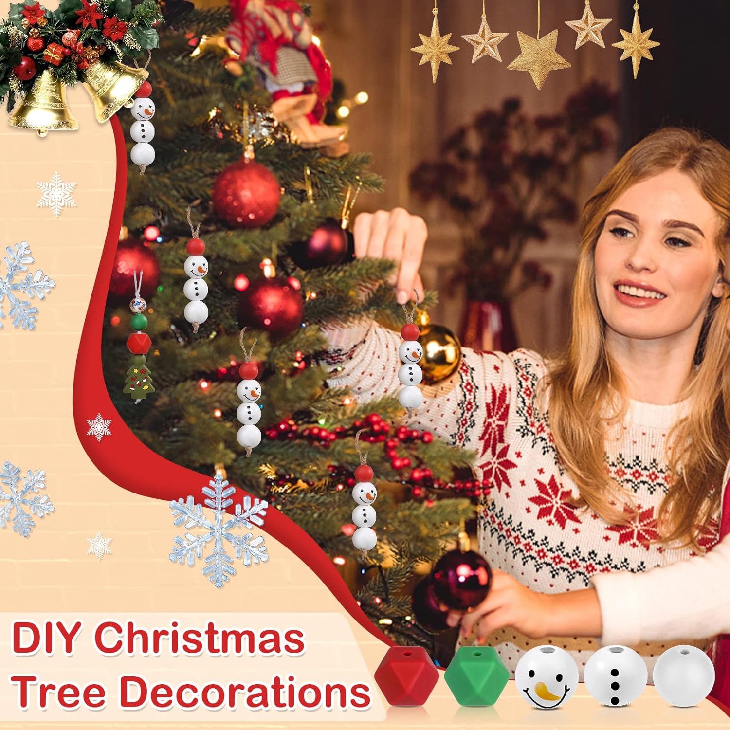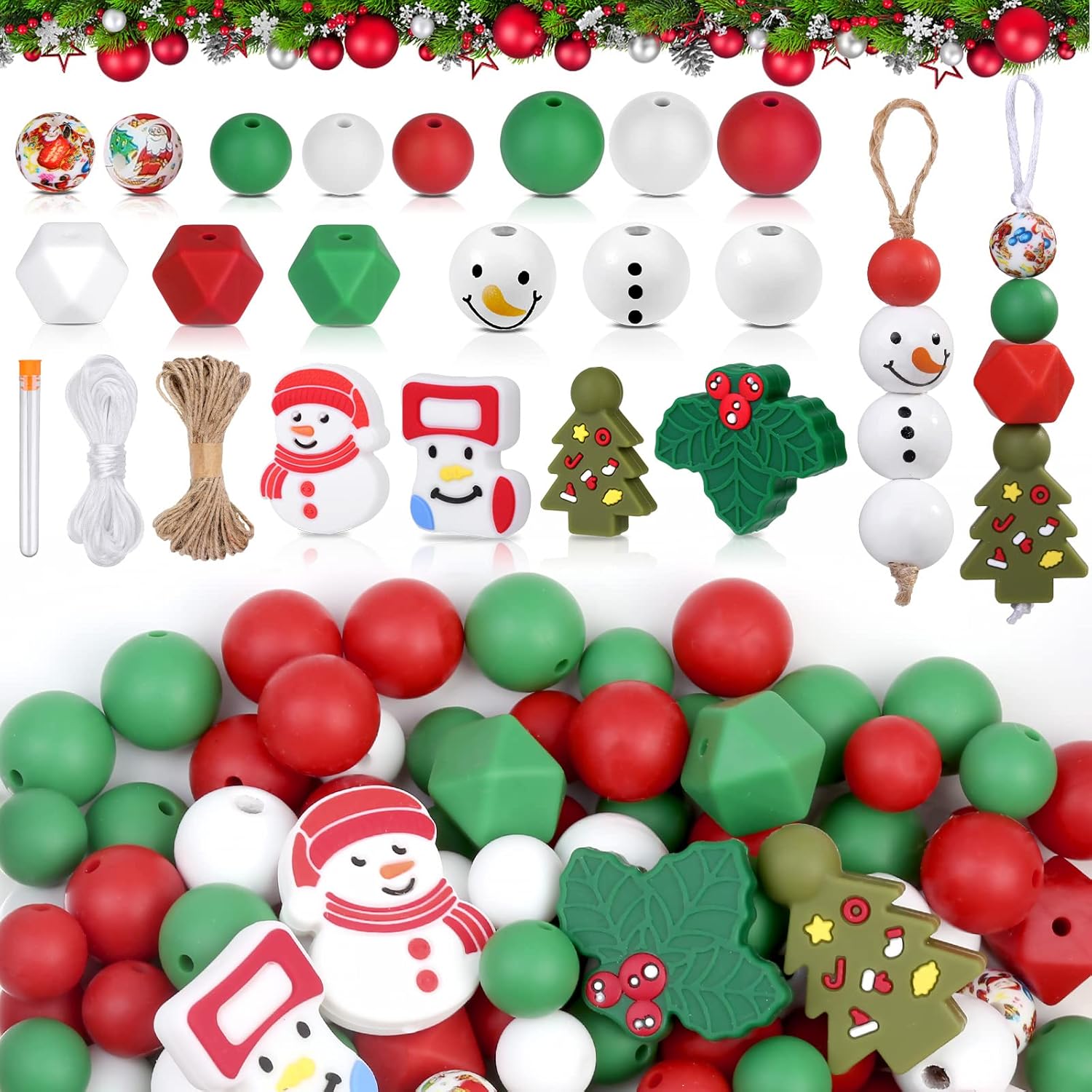 - šš”š«š¢š¬šš¦šš¬ ššššš¬ šš®š„š¤ ššØš« ššššØš« Lucomb silicone beads contain 12mm 15mm of round rubber beads with 3 different colors (white, red, green), 14mm polygon silicone beads, 16mm white wooden beads, Christmas stocking shape, Snowman, Christmas tree, Leaves-shape silicone spacer beads, ropes, big eye beading needles. All the color of beads is classic and rustic, string these all up may be making garland lanyard and tassels or decorating somewhere in the house for Christmas Decoration.