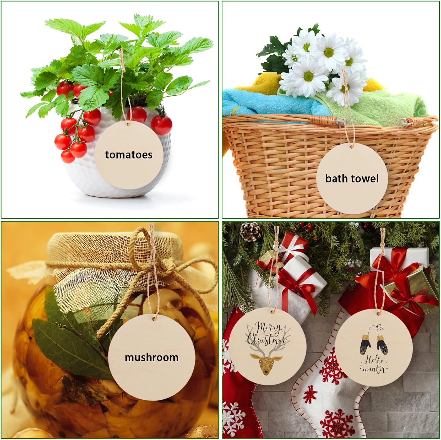 - Fun to DIY: the round wooden tags are designed with a blank smooth surface, you and your children can stain or paint on the wooden disc, make different styles of handmade tags, present tags or holiday decorations for your family members and friends