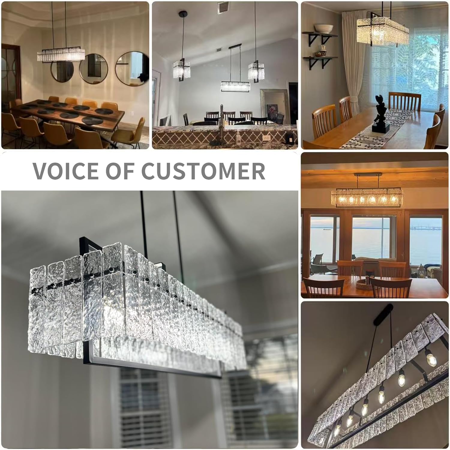 • [BRING NATURE HOME ]: This gorgeous Chandelier with 100% handcrafted water ripple glass. The Nature-inspired accessories can Strengthen the calming power of your home. Each glass is unique, mimicking the calming, restorative ambiance of the outdoors. Black matt coating metal frame is very friendly to a variety of scenarios.