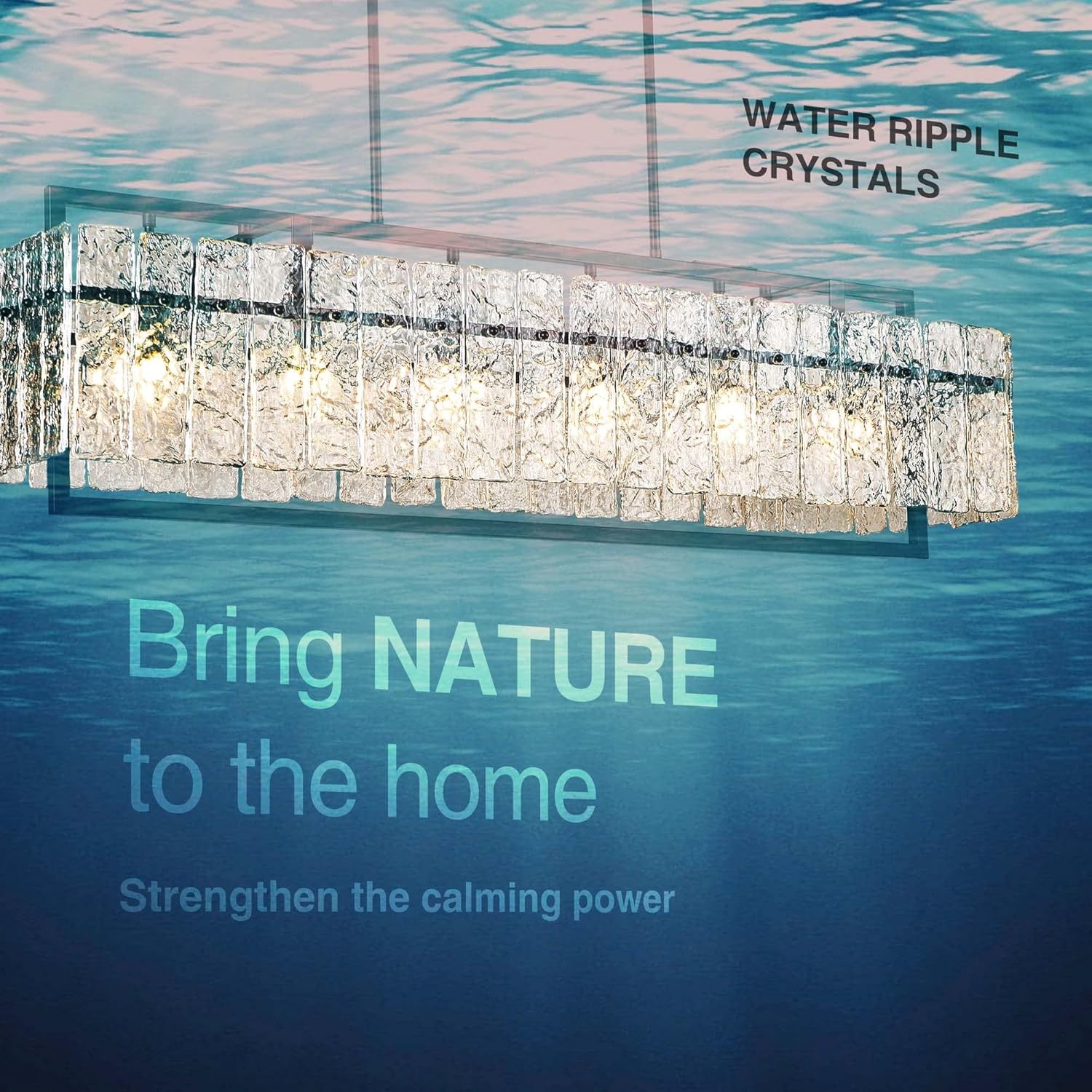 • [ LARGE RECTANGLE CHANDELIER ]: The dimension of this unique crystal chandelier is L42" x W11" x H12". The hanging height is from 4"-60" adjustable. The US standard canopy size: L14" x W4.3" x H1.1". The total weight is 24LB. And it is perfect for large dining room, kitchen island, living room, bar area, etc.