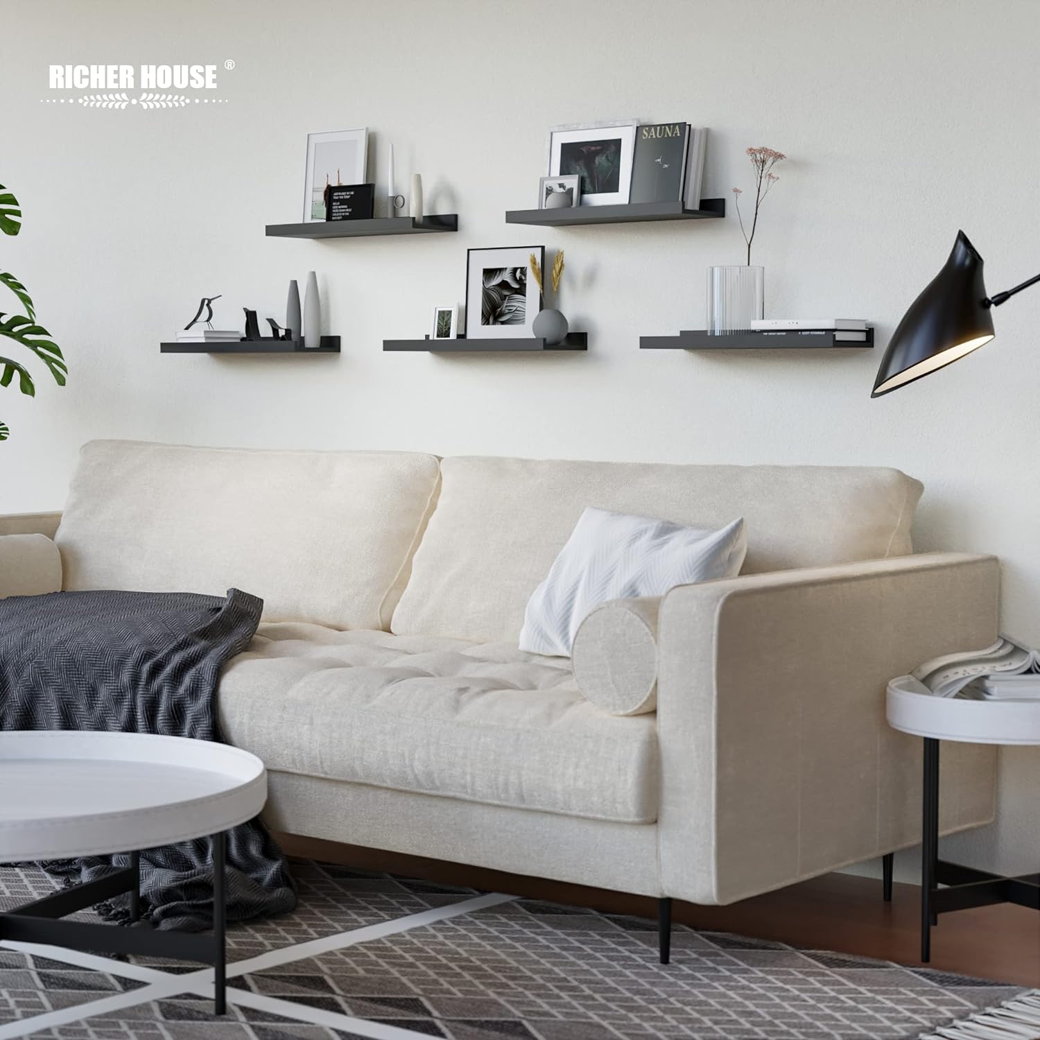 - Minimalist Modern Design - The classic color scheme and universal size make this shelving ideal for any home dΓ©cor, whether modern or farmhouse decor, allowing to create a chic wall statement. Each wall ledge in this set looks beautiful on its own or is displayed as one symmetrical gallery.