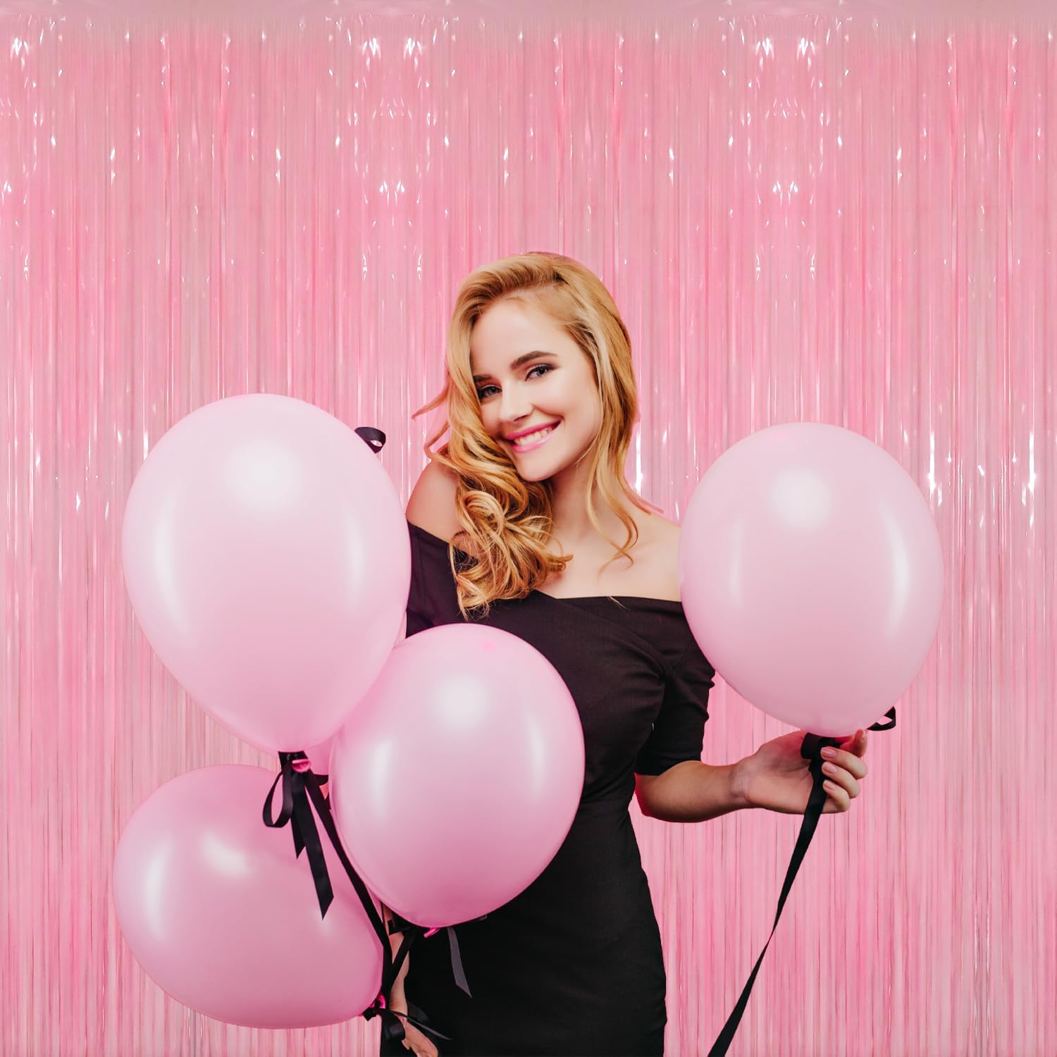 GOER 3.2 ft x 8.2 ft Metallic Tinsel Foil Fringe Curtains Party Photo Backdrop Party Streamers for Birthday,Graduation,New Year Eve Decorations Wedding Decor(3 Packs,Candy Pink)