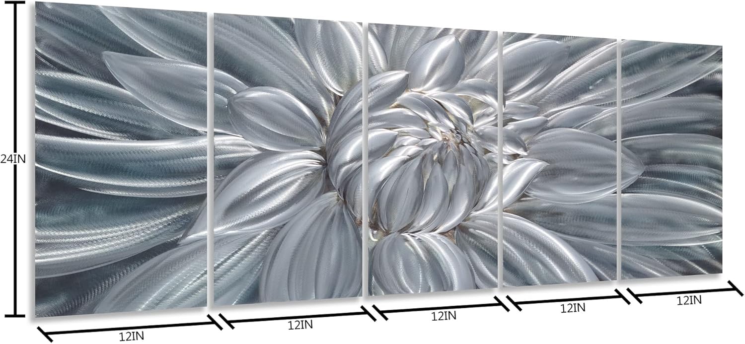 - Silver Metal Flower Wall Art: 24x12INx5 Panels (24x64IN, 60x150CM)