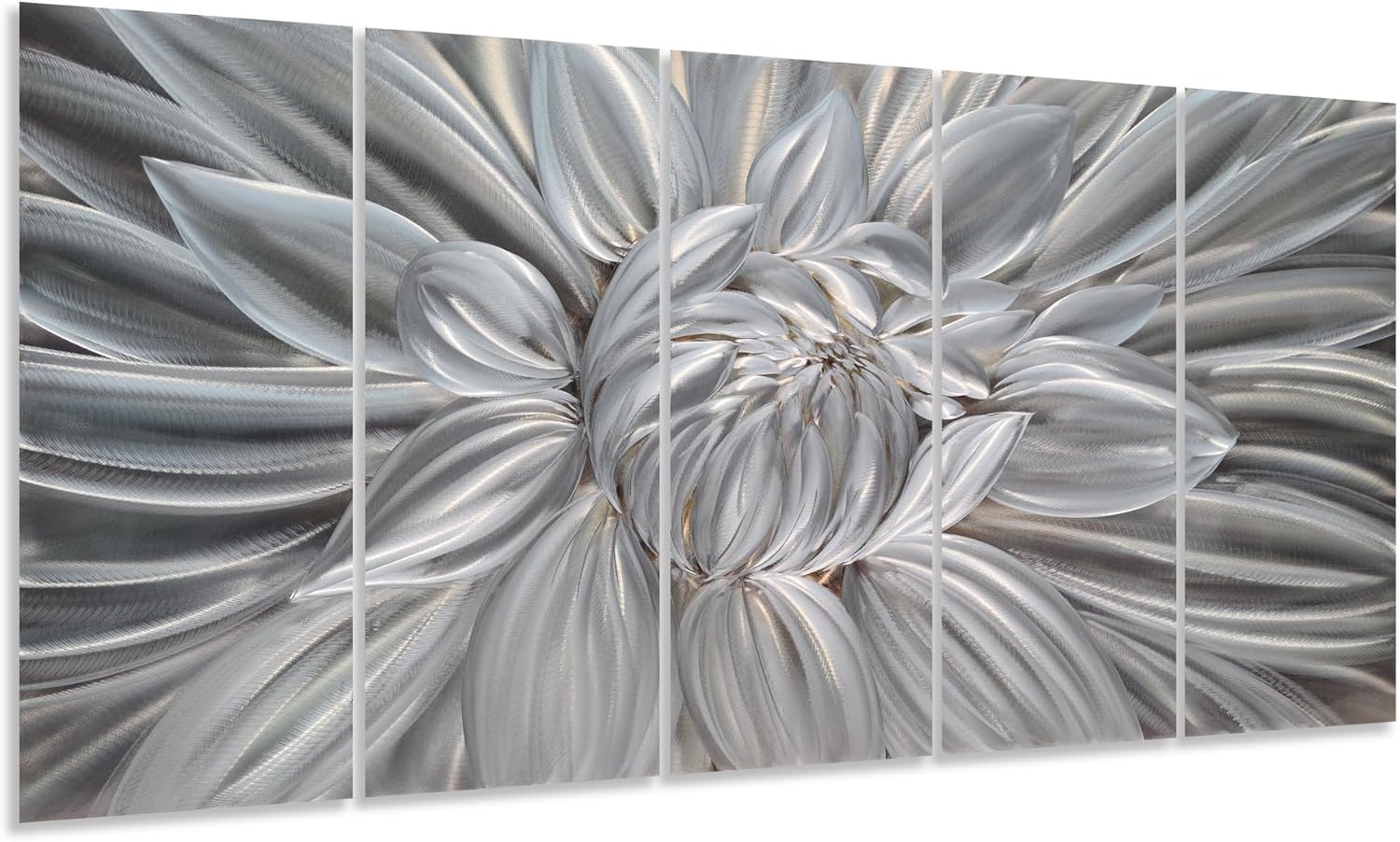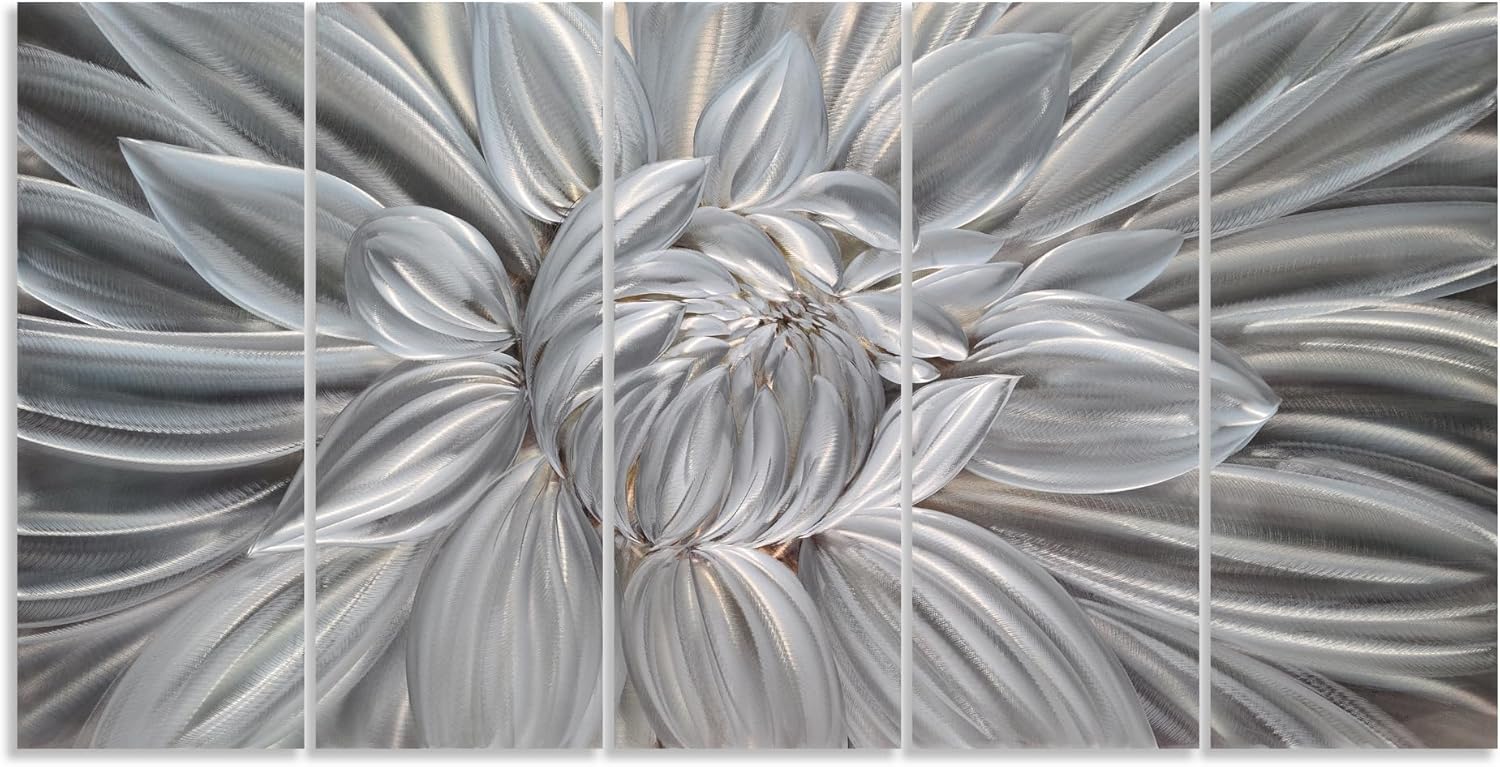 - Silver Metal Flower Wall Art: 32x12INx5 Panels (32x64IN, 80x150CM)