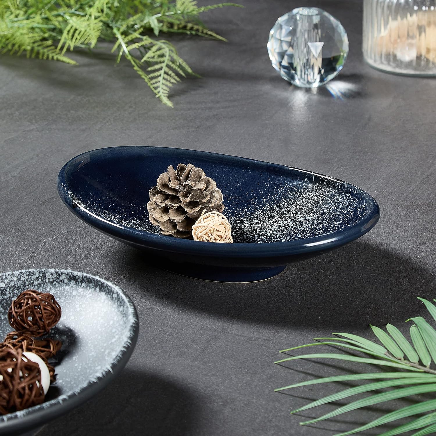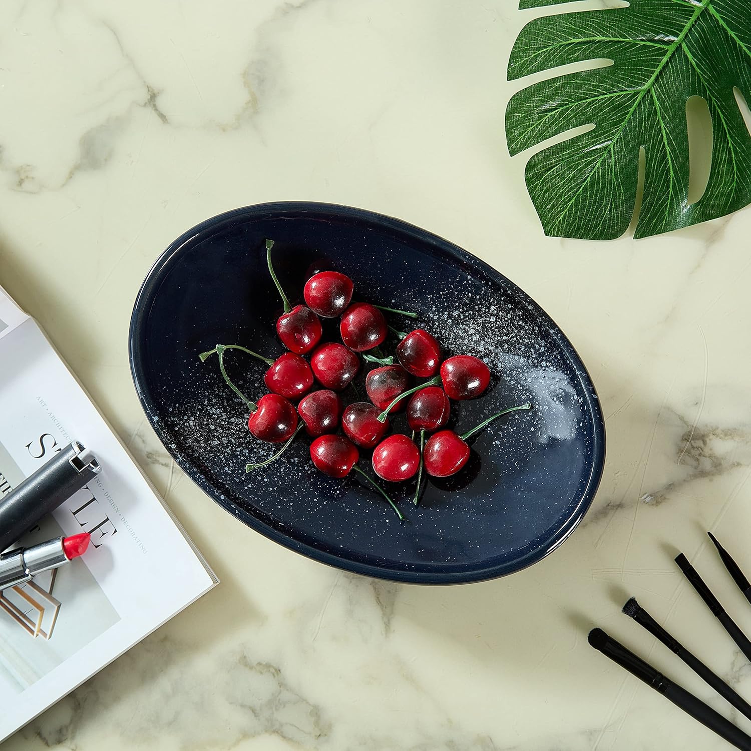 Oval Ceramic Decorative Bowl, Key Dish for Entryway Table, Small Home Decor Accent, Trinket Tray for Office Home Decor Gift (10'' Starrysky Blue with Glaze Layer)